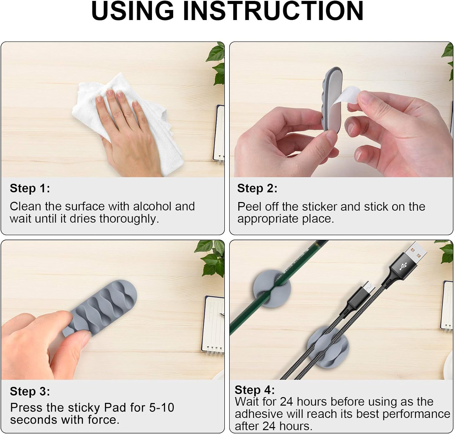 【Easy To Use】 You can easily attach them to horizontal and vertical surfaces. Firstly, clean the surface and wait until it dries thoroughly. Secondly, peel off the sticker and stick on the appropriate place. Thirdly, press the sticky Pad for 5-10 seconds with force. Then wait for 24 hours before using and you can start to manage your cords