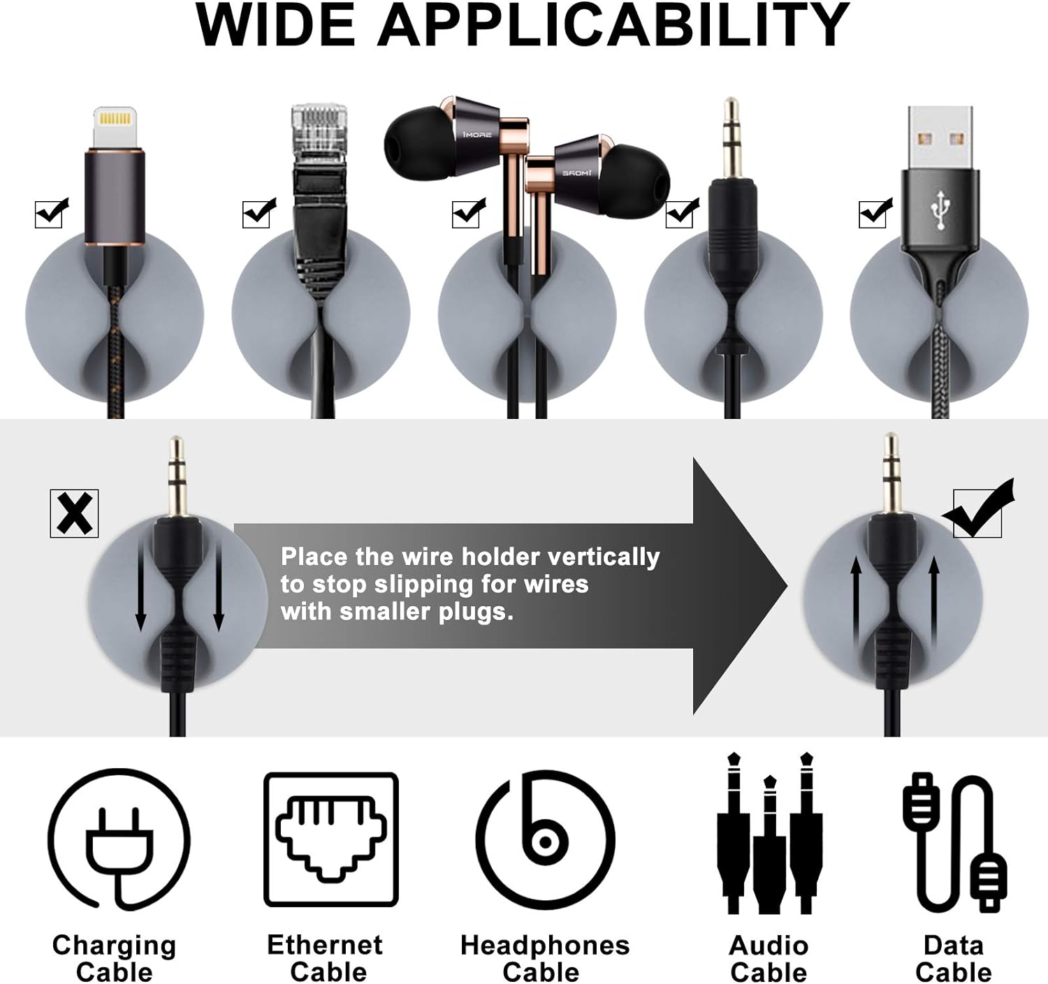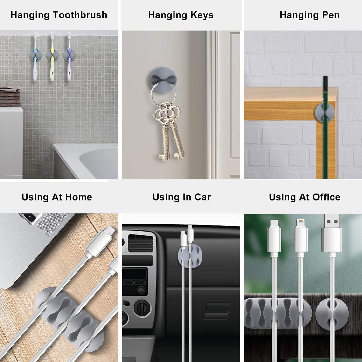 【Multipurpose】You can use them as table cable organizer , computer or TV cables, power cords, charging cables, mouse cables, headphone cables and more which can be used at home, office and car. You can also use them as a pen holder, as toothbrush or flosser holders, flexible and easy to install wherever you want
