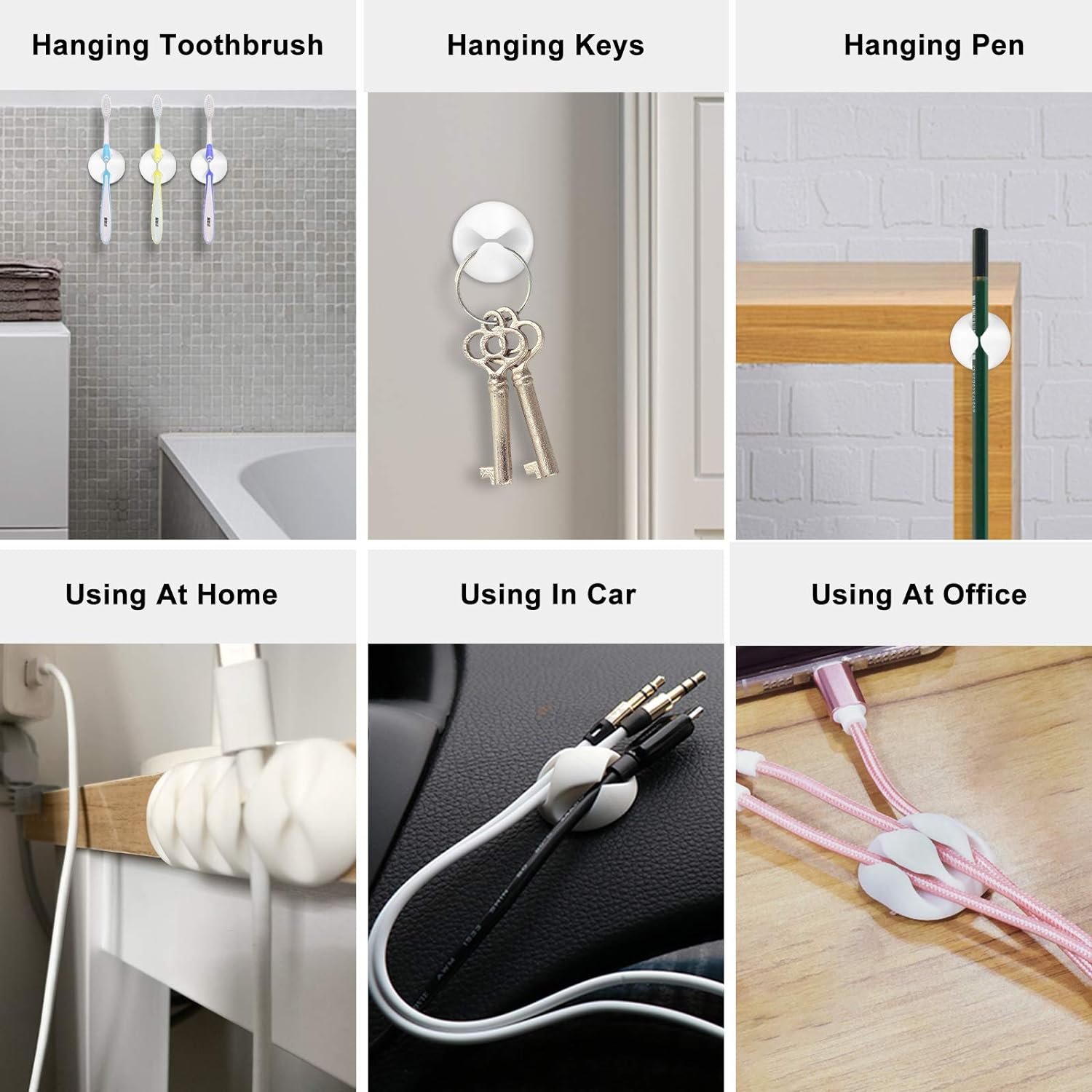 【Multipurpose】You can use them as table cable organizer, computer or TV cables, power cords, charging cables, mouse cables, headphone cables and more which can be used at home, office and car. You can also use them as a pen holder, as toothbrush or flosser holders, flexible and easy to install wherever you want