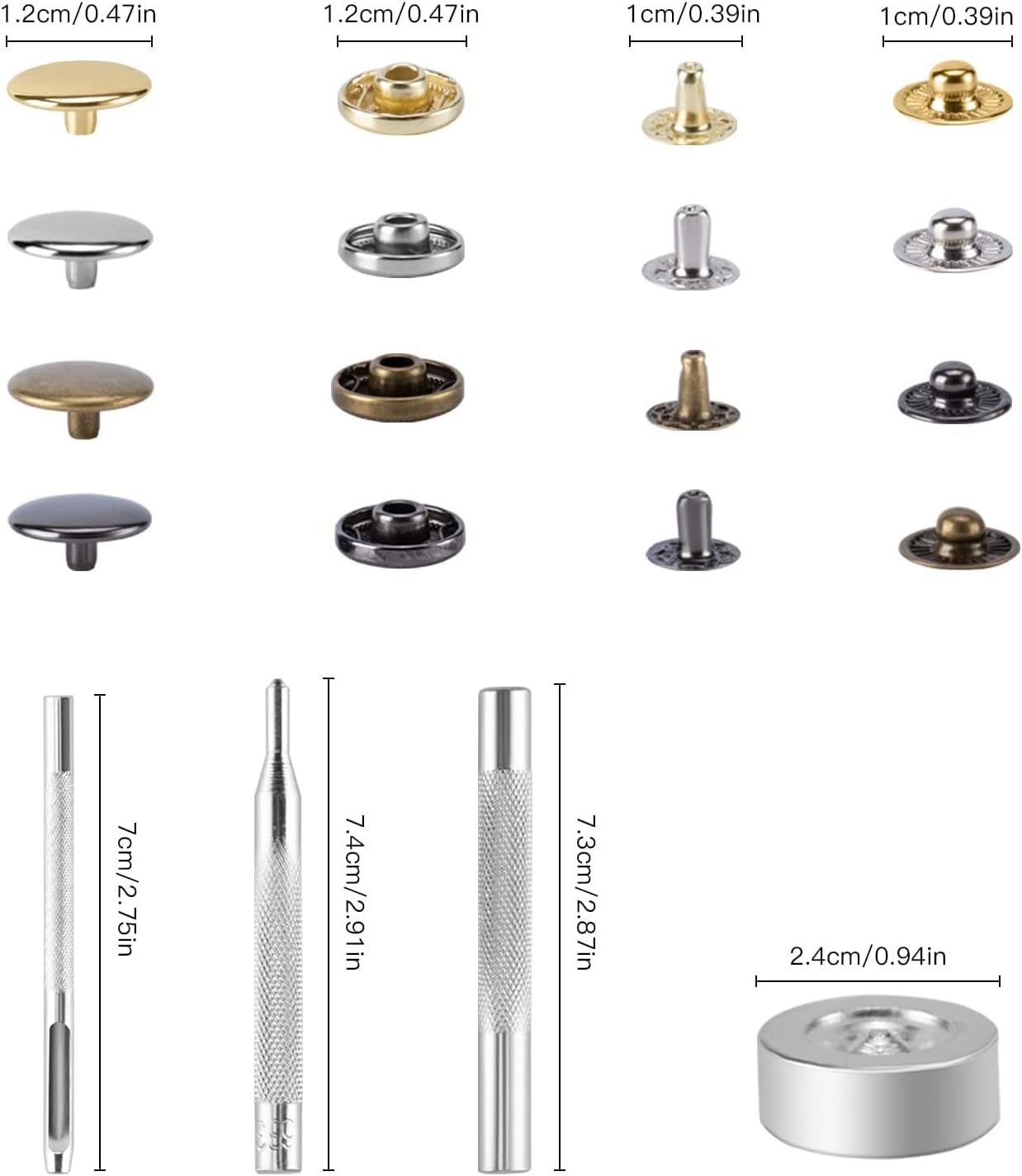 【Easy installation】 With picture instructions and 4 installation tools, a hollow punch, a base and 2 model installation tools, so you can easily sew or repair your clothes yourself.