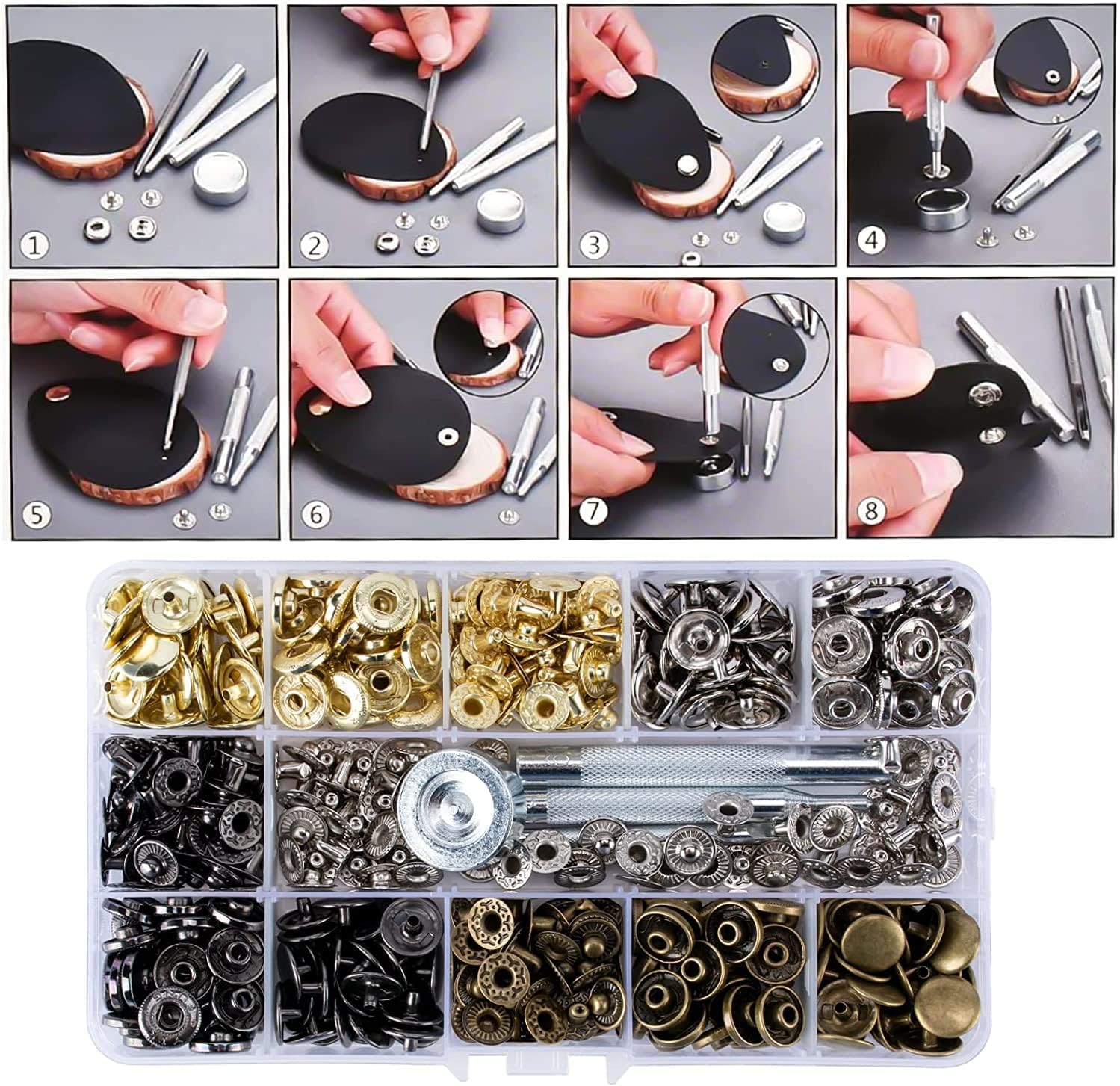 120 Sets Snaps with Fixing Tool Kit for Leather Craft Jcket Wallet Handbag (12.5mm)