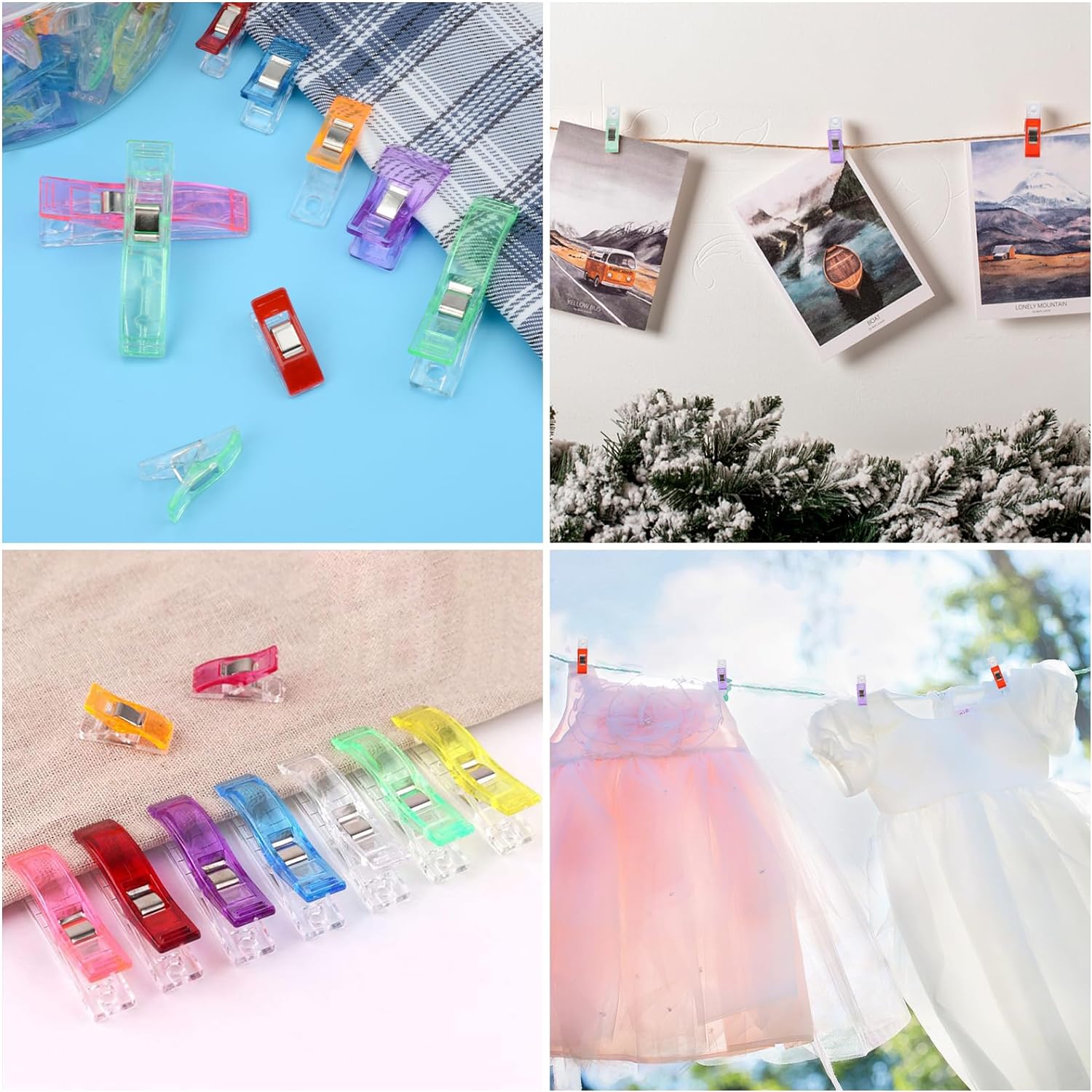 【Multi-purpose Sewing Clips】Our plastic craft clips have a very strong grip, making it easy to hold many items in place. The sewing clips can be used to sew quilts, bind paper, handcraft DIY, seal potato chip bags, crochet and knit. Or use them to hang clothes, photos and decorations on a rope.