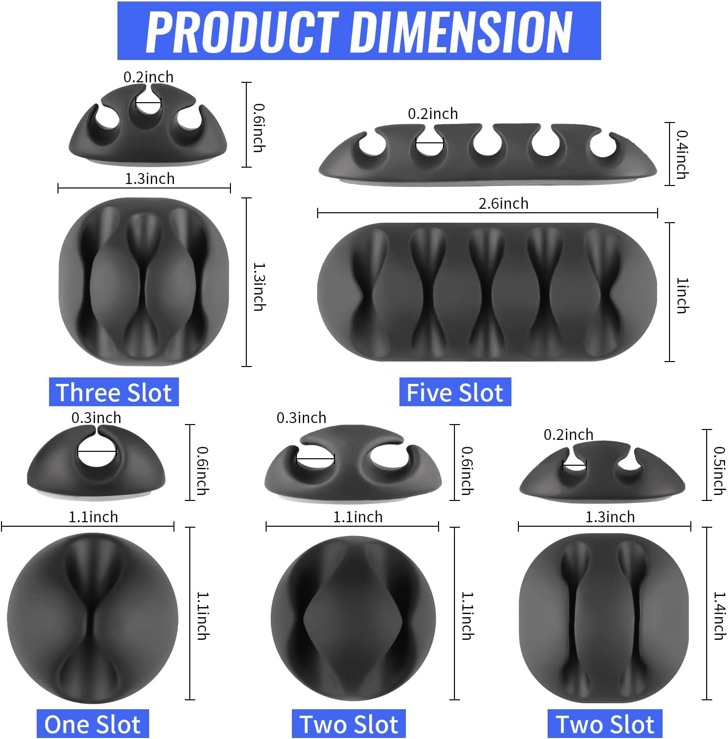 Multiple Specifications: The package includes single-slot, two-slot, three-slot and five-slot cable clips, you can choose the appropriate clips and stick them in different places according to different needs