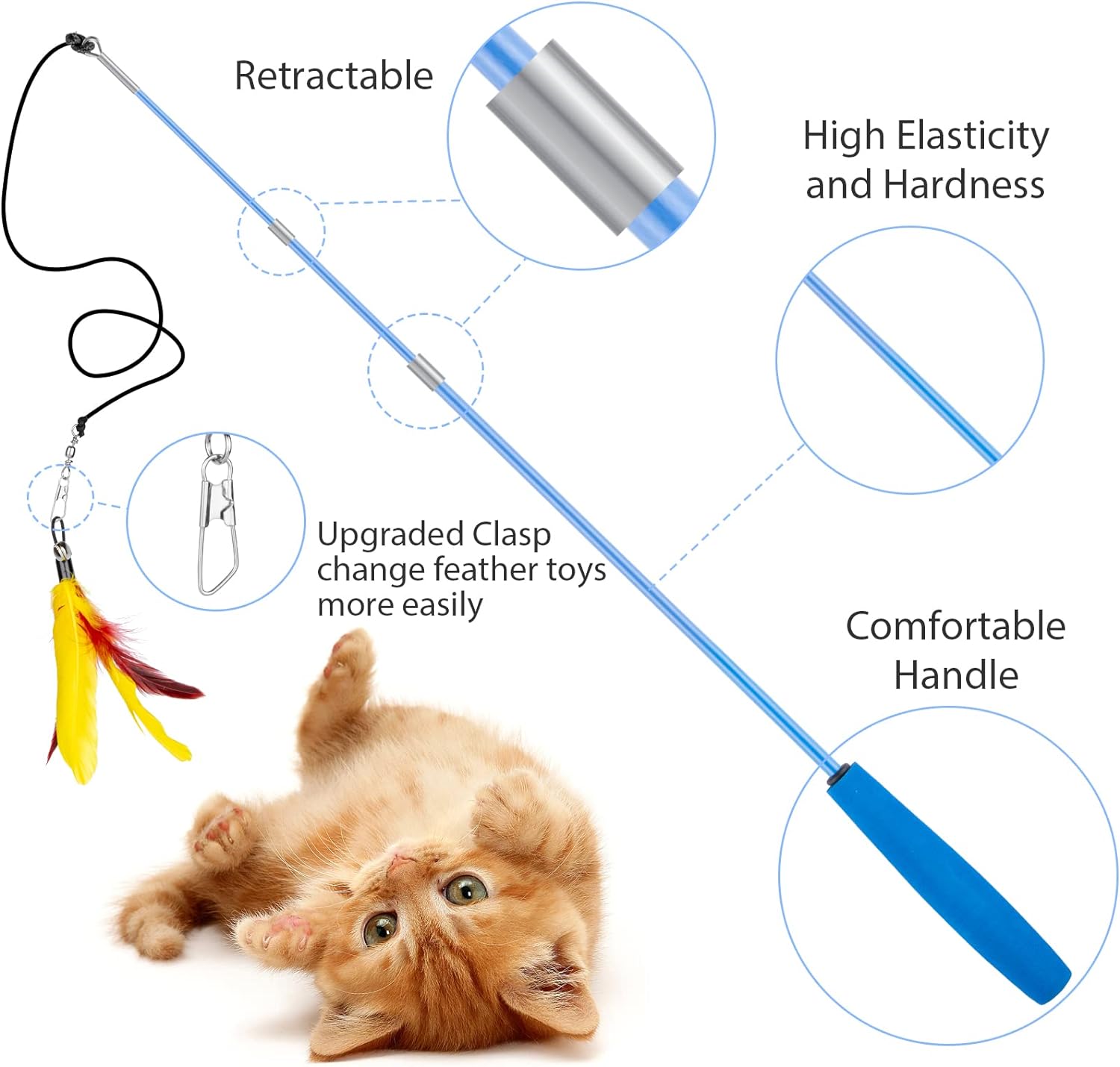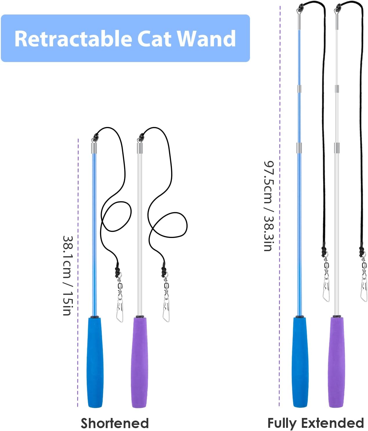Retractable Cat Wand Toys: The wand can adjusted to your desired length. It's very light, flexible, durable and easy to store. The foam handle makes your hands more comfortable and make it possible to play a longer time without getting you tired.