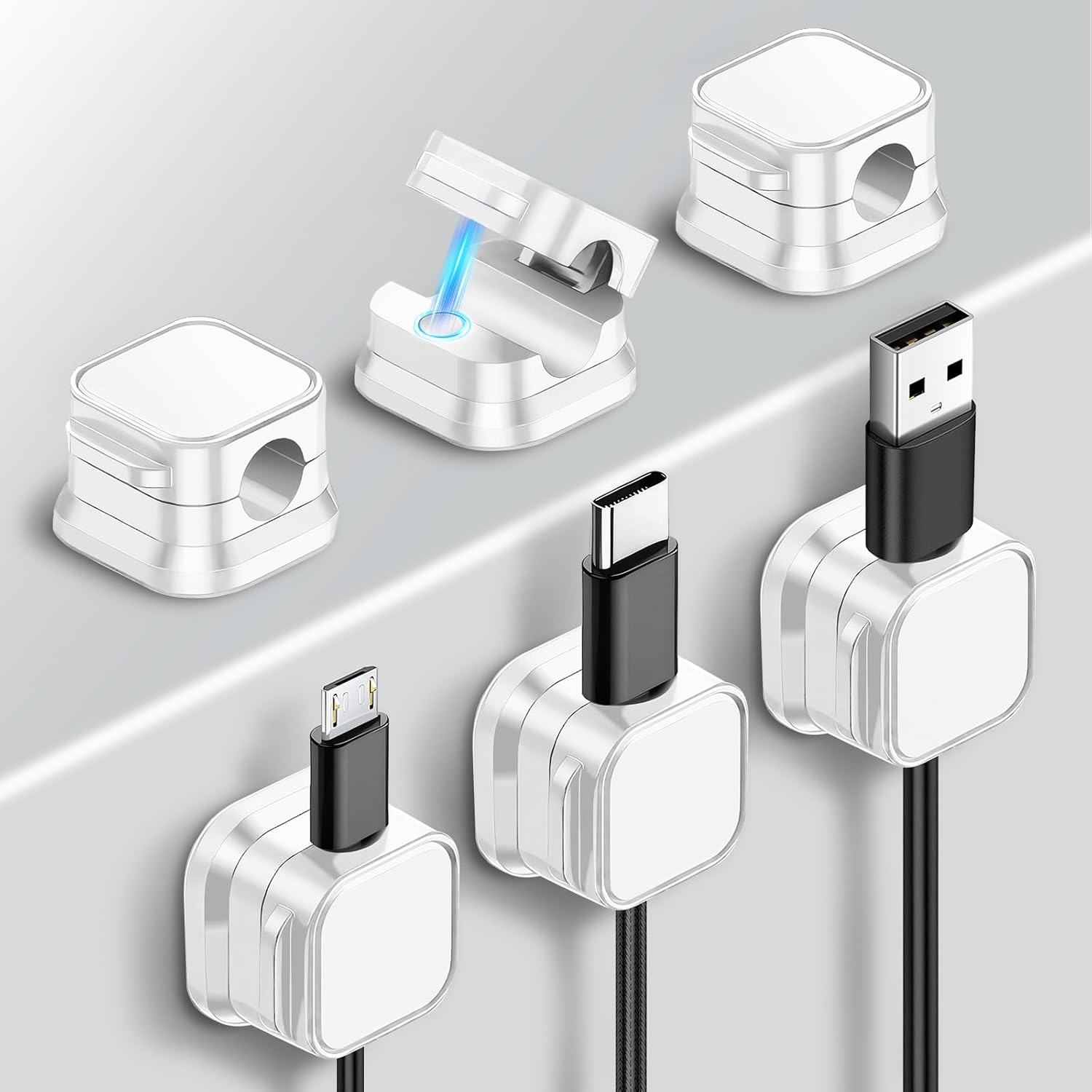 【Keep Your Cables Clean and Organized】6 Pack Magnetic Cable Clips are small and exquisite in design, which can firmly fix cables in proper positions, and you can easily place cables neatly on desks, tables and walls, helping you keep your space tidy and orderly