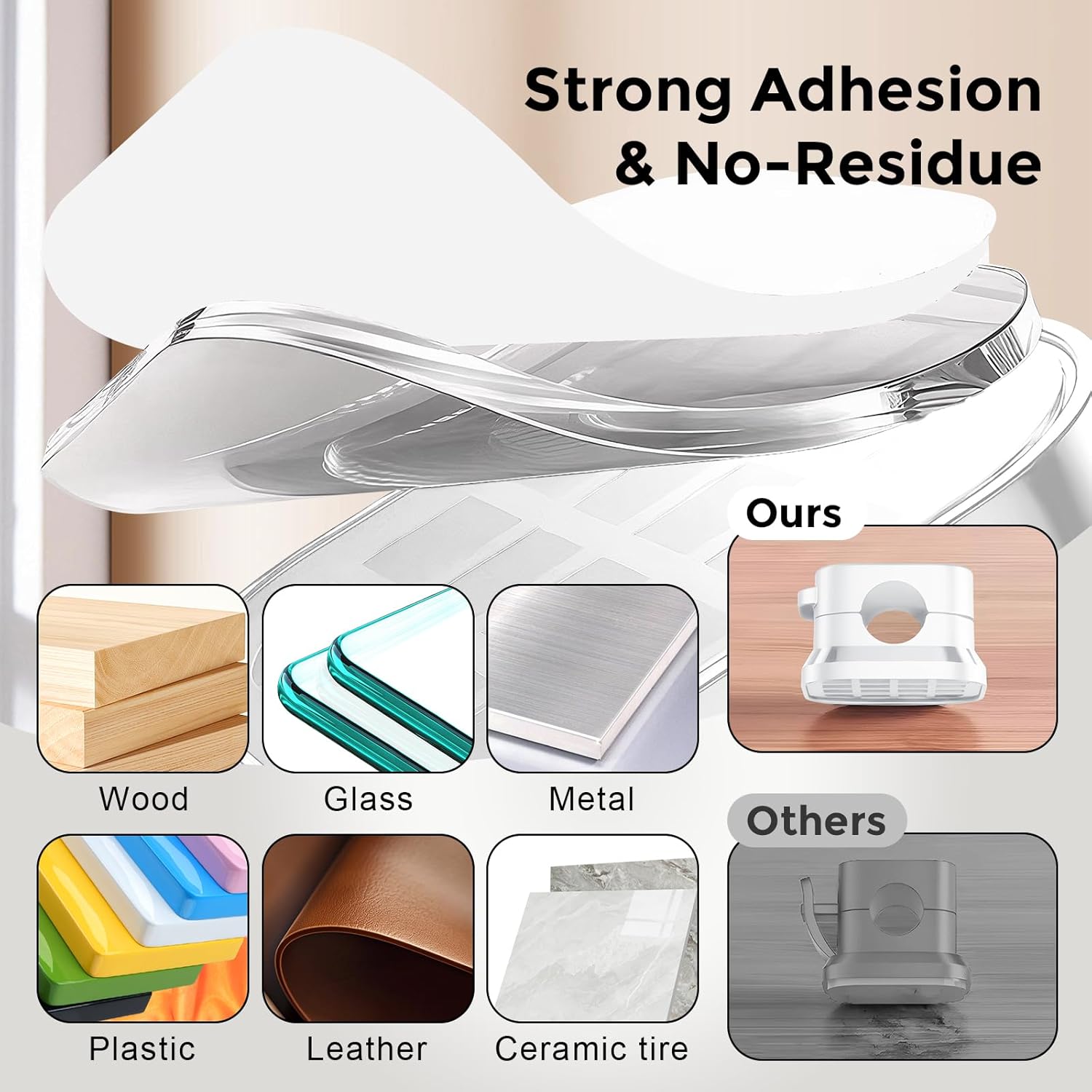 【No-Residue or Damage】Cable clips uses upgraded adhesive pads to make sure adhesive strength. Cable organizers can be firmly adhered to flat and clean surfaces, such as wooden tables, glass, tiles, etc, without leaving any residue or damaging your surface. It is a perfect choice for home and office