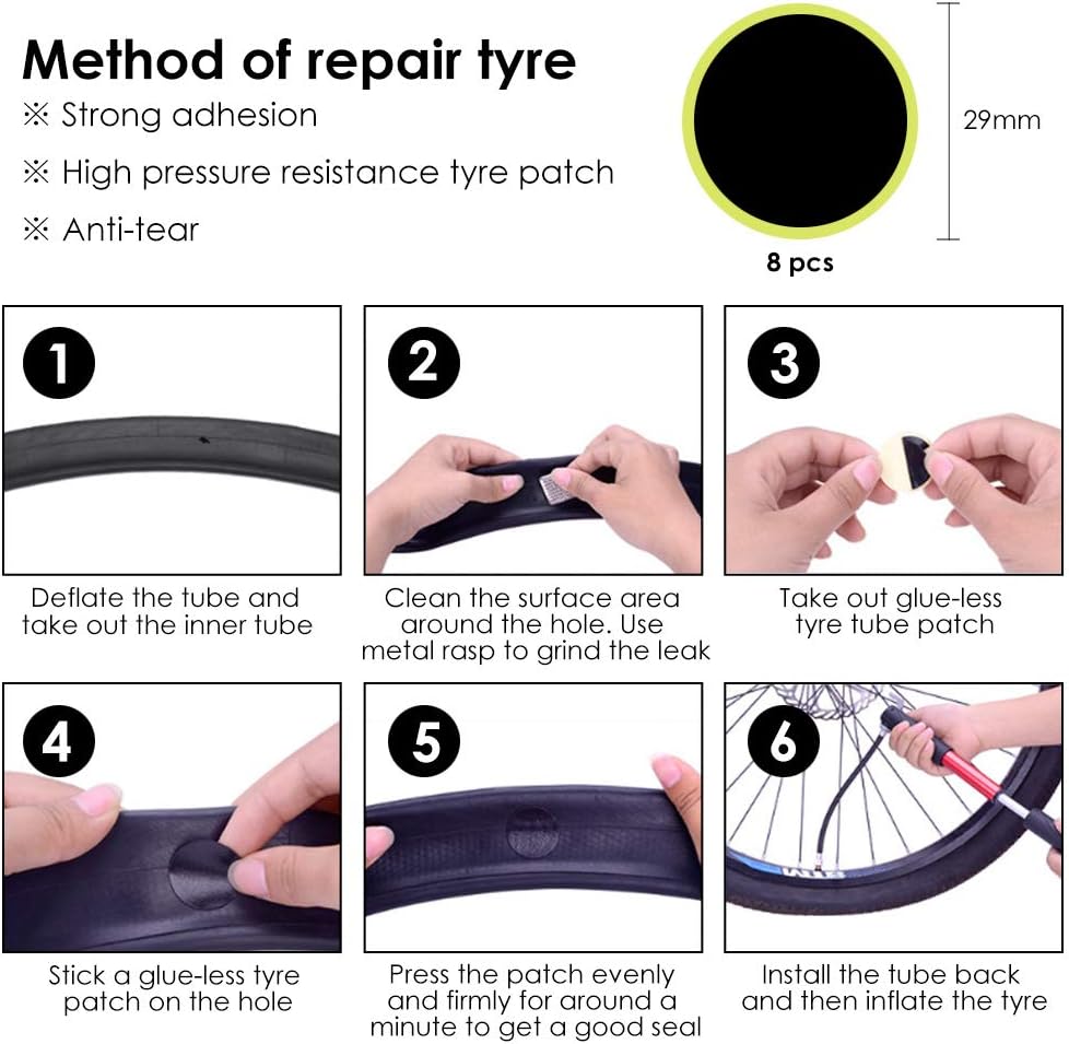 【PAT EASY TO ATTACH PAT PATCH】You can repair the punctured tire without any additional glue, simply apply the scraper to polish the tire and then stick the patch firmly on the punctured area (for emergency use only).