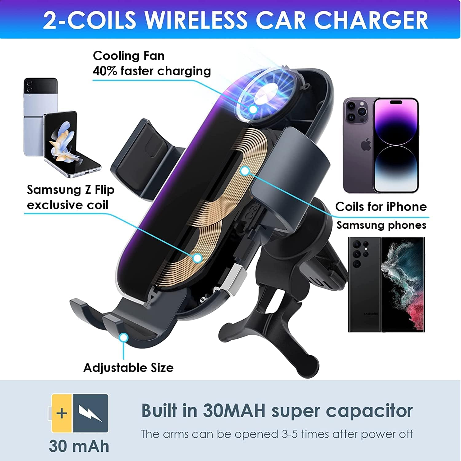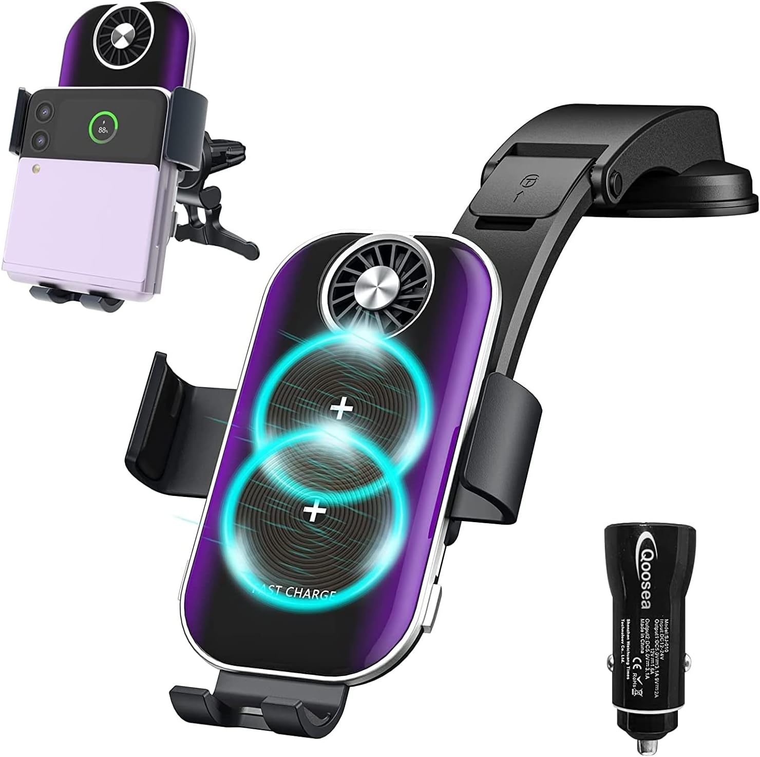 Car Mount 15W Dual Coils Fast Wireless Car Charger for Samsung Galaxy Z Flip 5/4/3,iPhone 15/14