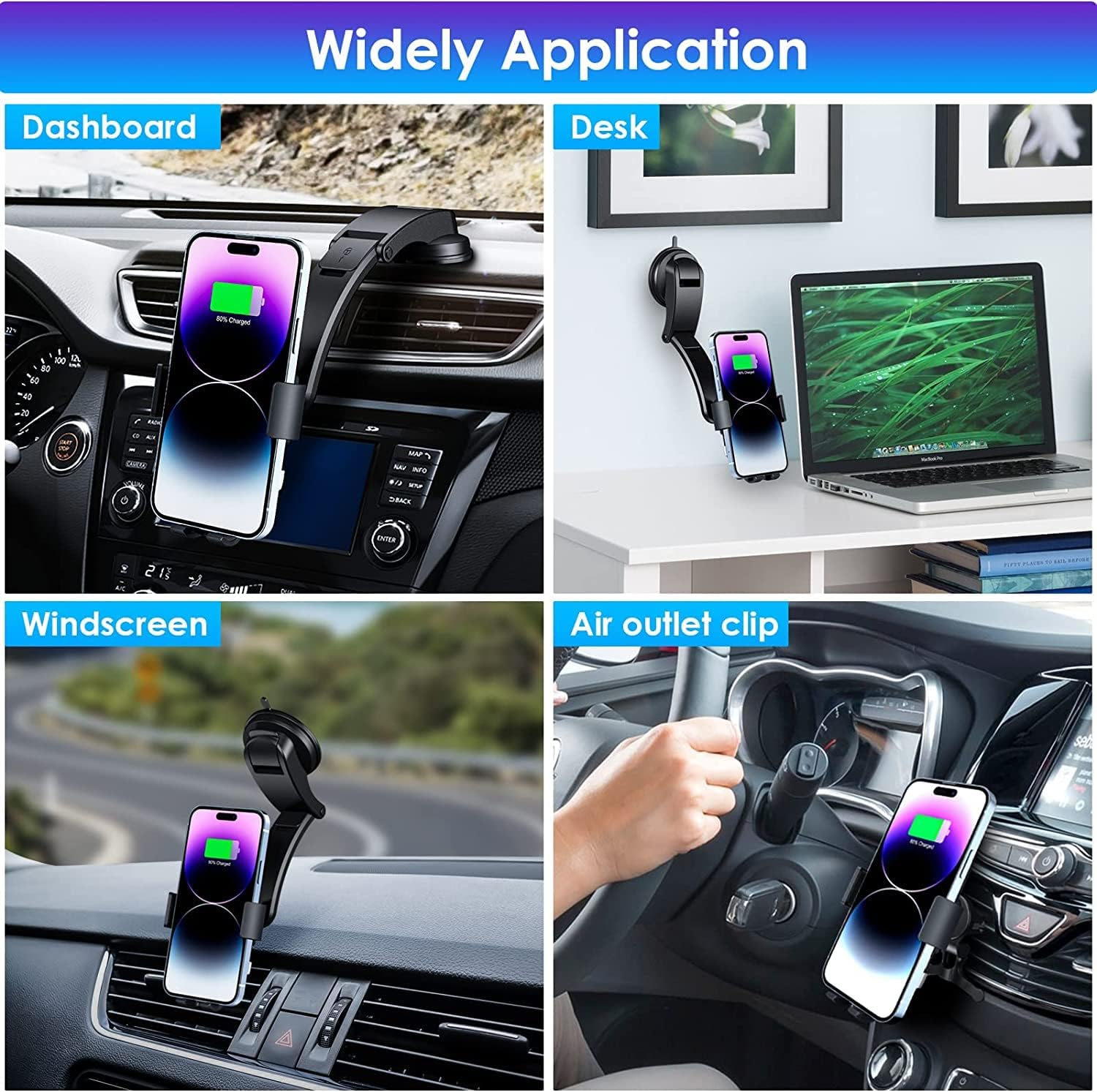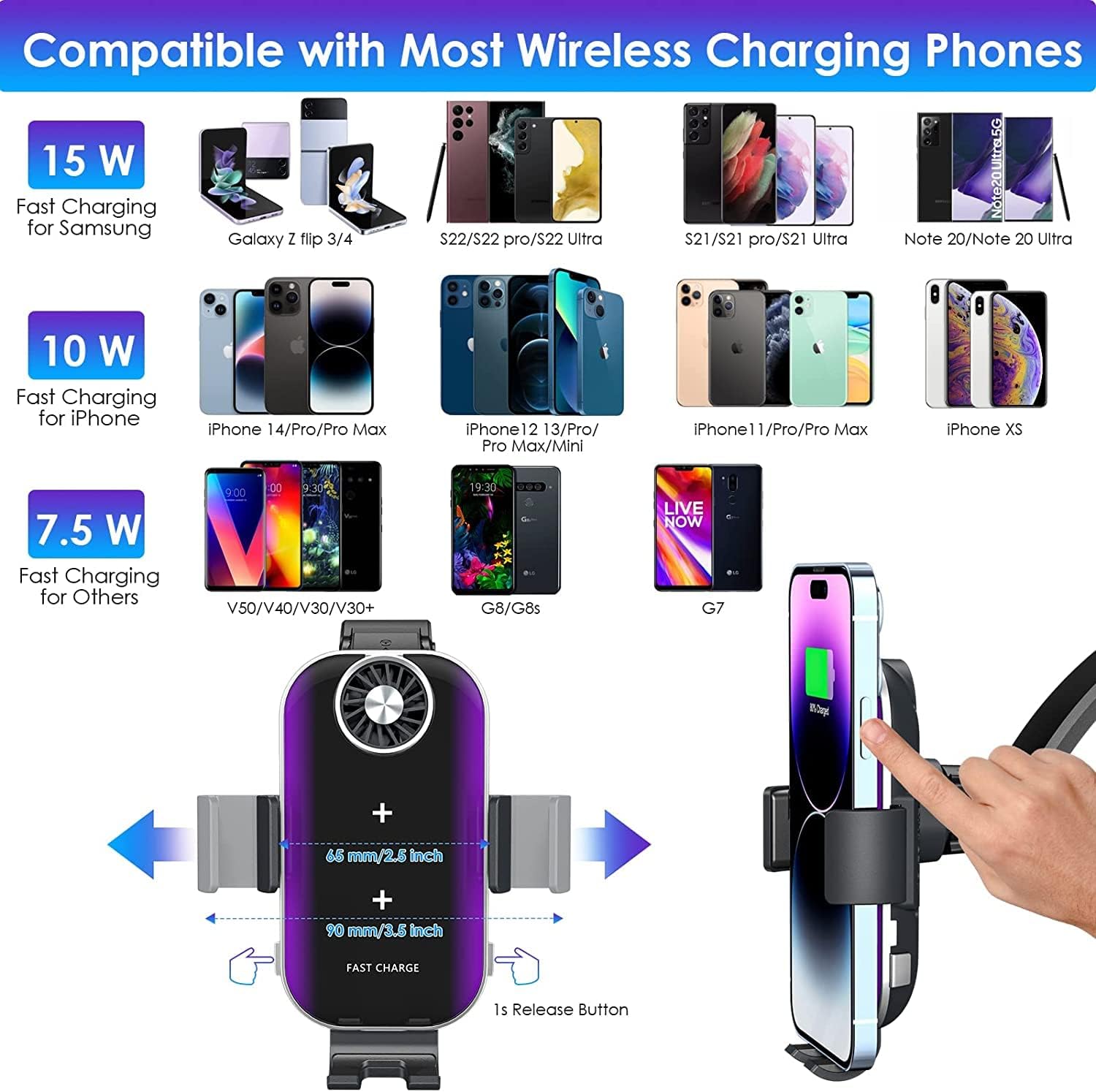 15W Fast Wireless Car Charger - Compatible with all Qi charging phones in sizes 4.3 - 6.9 inches, including Samsung Galaxy Z Flip 5/4/3/2, Note20/Note 20 Ultra/10/9/8, Galaxy S22/S22 Ultra/S22+/S21/S21 Ultra/S21+/S20, iPhone 15/15 Plus/15 Pro/15 Max/15 Pro Max/14 /14Pro/14 Pro Max/13/13 Pro/13 Pro Max/12/12 Pro/12 Pro Max, Huawei, Google 6A/Pro/6, LG, Moto Built-in condenser, although your car is turned off, you can still remove your phone from the car charger 1-2 times.