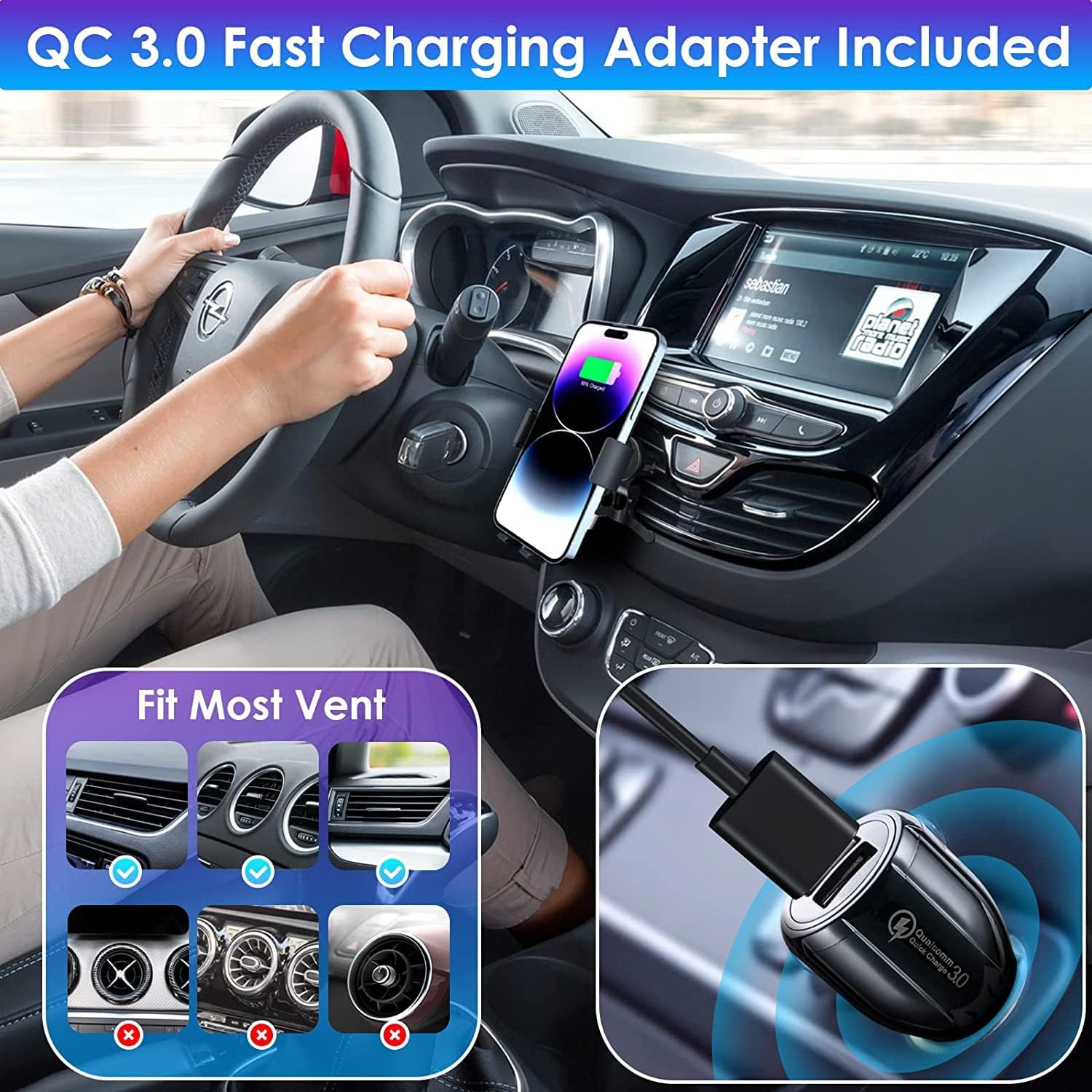 360 rotating mobile phone holder: the fast wireless car charger and mobile phone holder car can be easily attached to most air vents. You can operate it with one hand with one hand, 360° rotating ball, can match all your driving points for more safety. The best Christmas gifts for dad, husband and friends. Note: It is compatible with horizontal and grid slots, but not for arch, retractable and passive air vents.