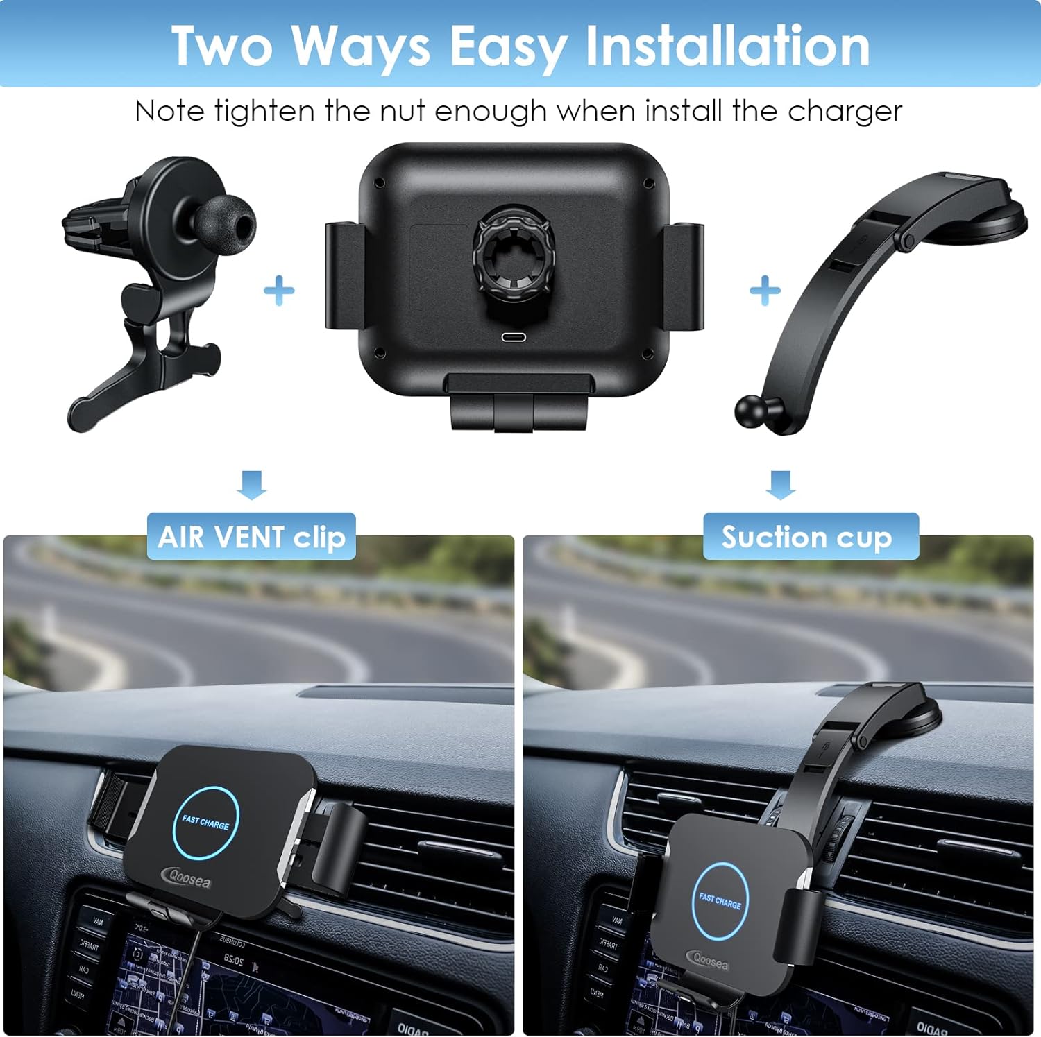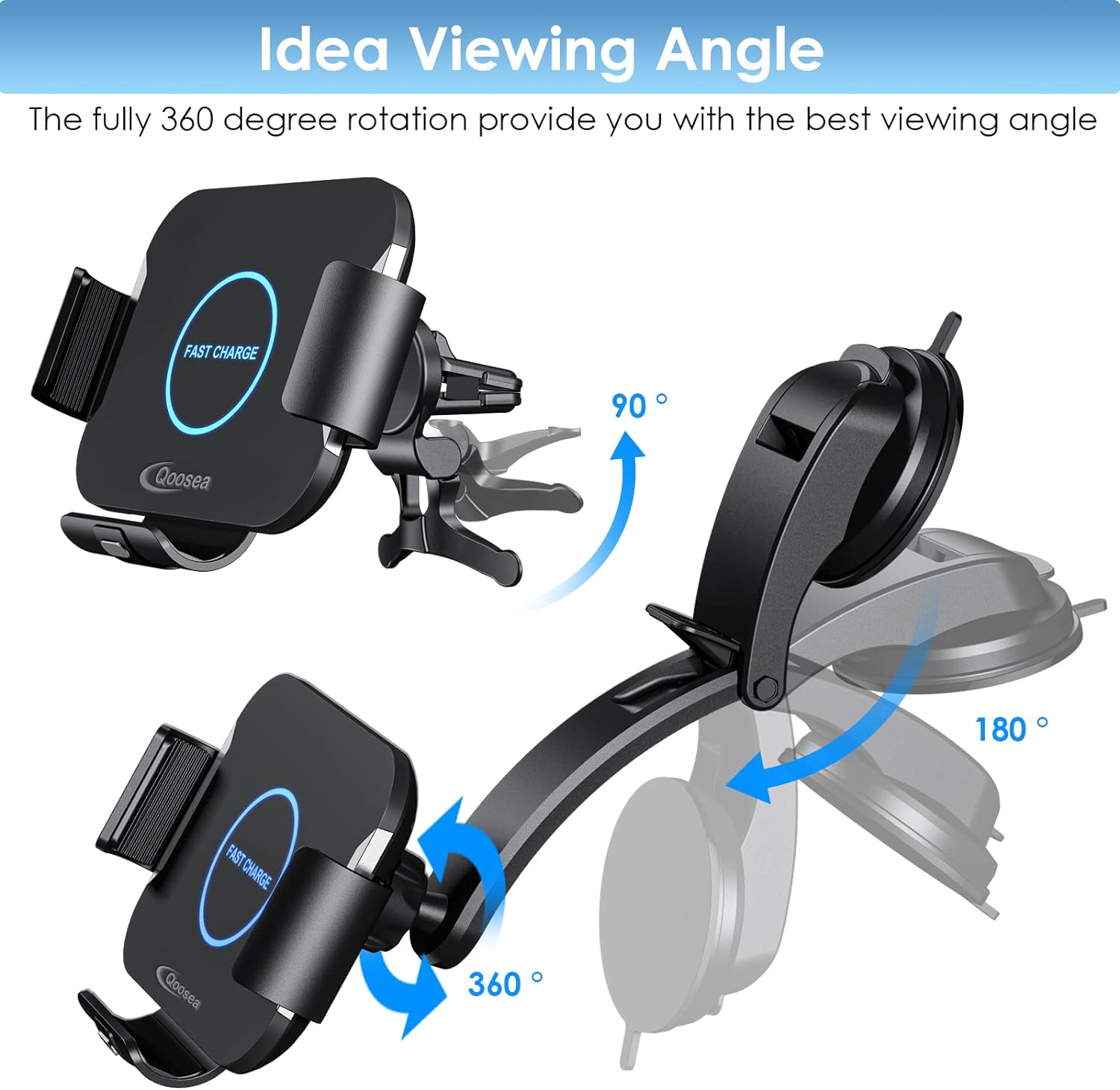 【Smart Auto Clamping & 2 types of phone mounts】: This Press the release button of the handset holder and it will open automatically clamp your phone . This phone holder can protect your phone .The car phone holder can be on the windshield, dashboard, table securely with the strong suction cup. Also can installed to Air vent with the air vent clamp