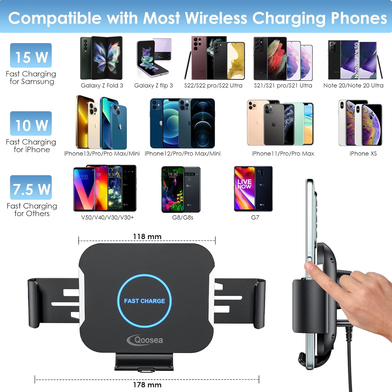【15W Fast Wireless Car Charger】: Car phone mount for Samsung Galaxy Z Fold 5/3/4 Built in dual coil, the car phone charger can quickly charge your phone to ensure your best experience. Easily place your Z fold 5/4/3/2 phone horizontally or vertically, and place your phone vertically to easily adjust the phone's volume keys and lock screen keys