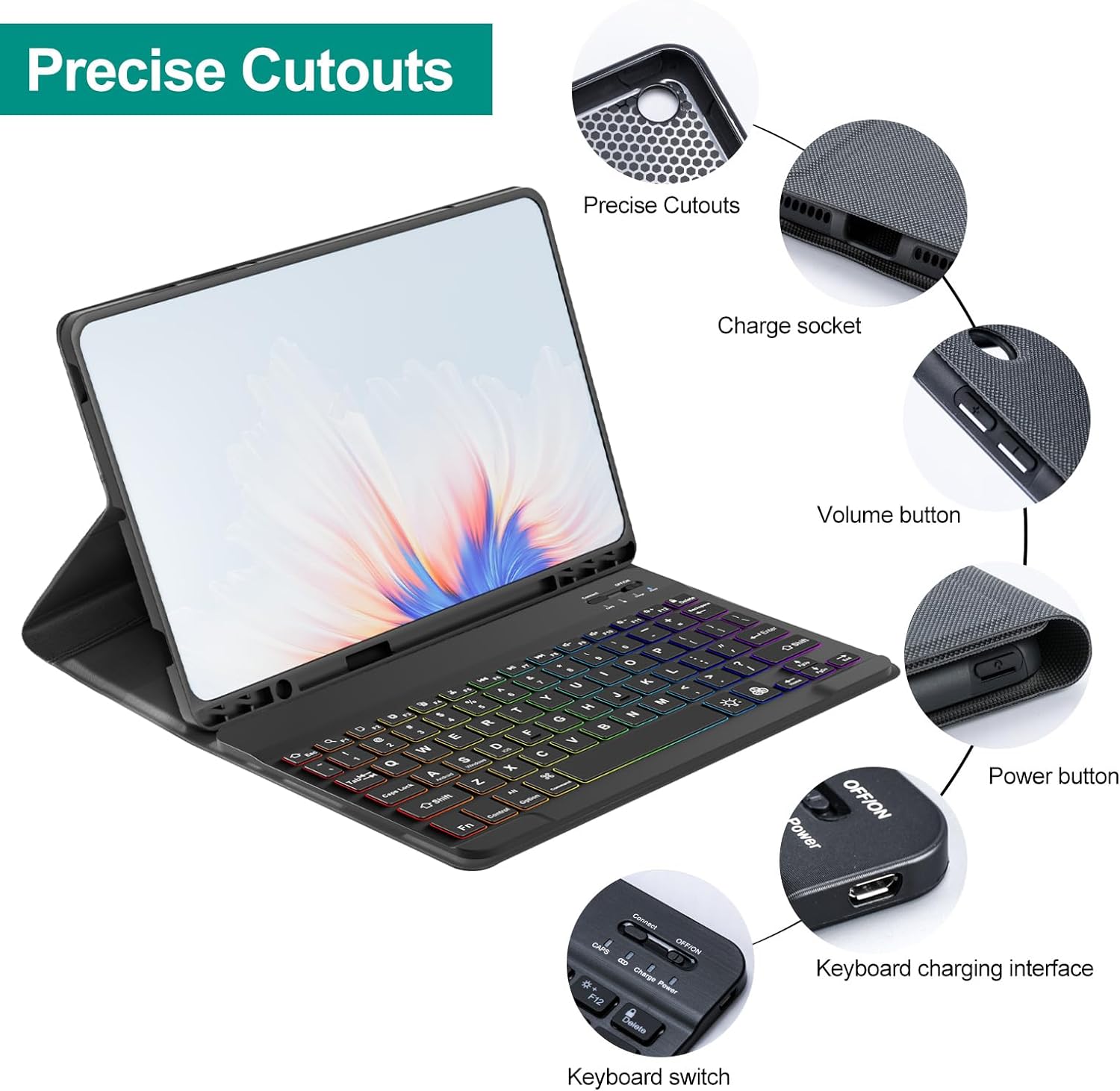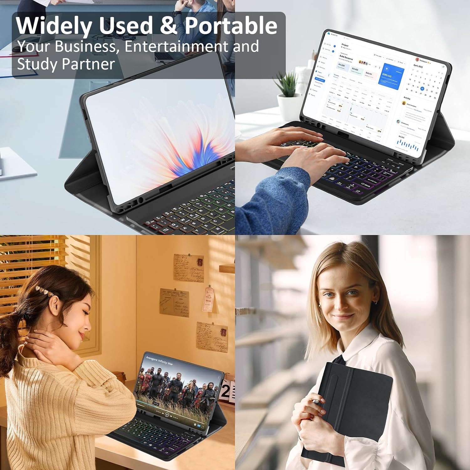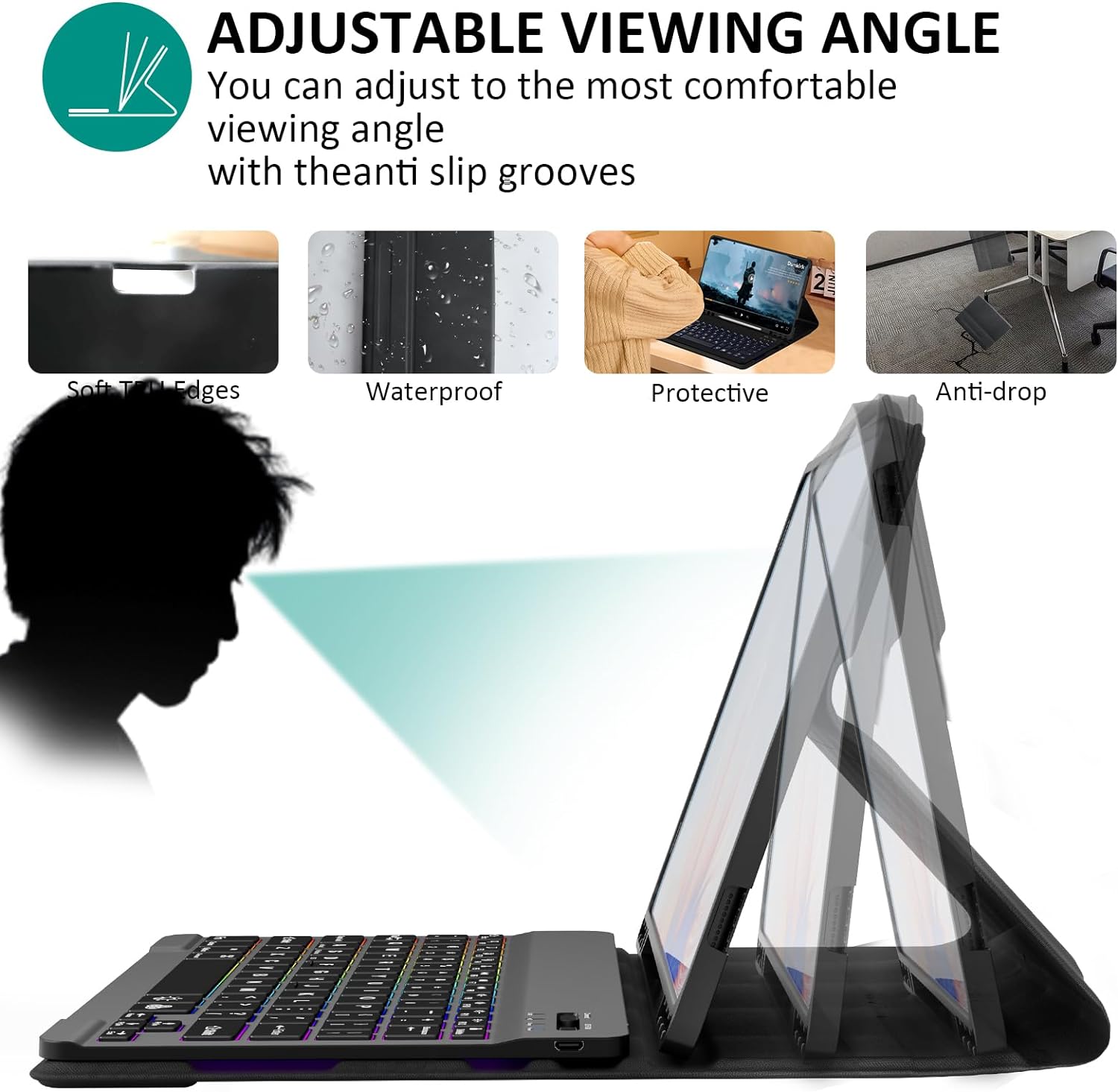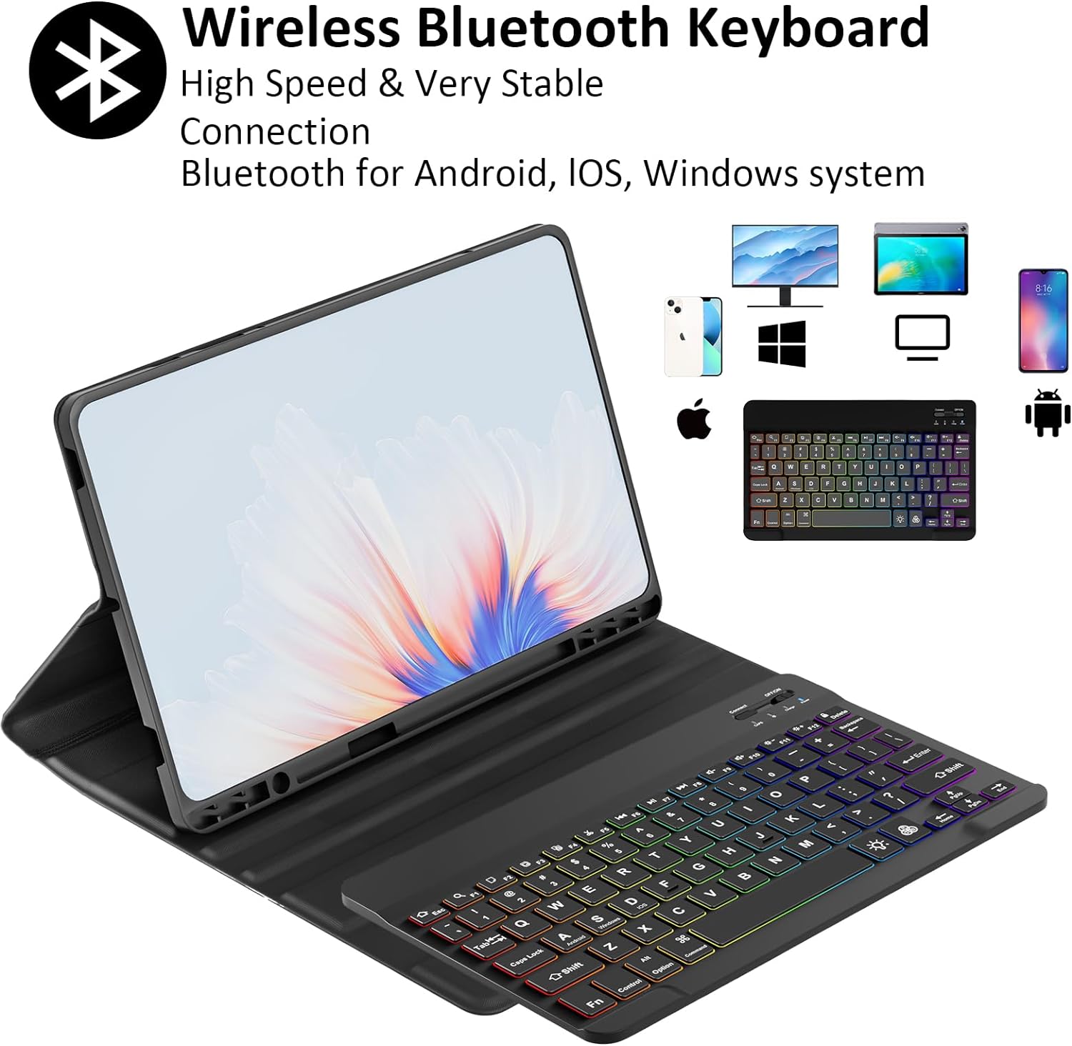 【As a gift for your family/friends】 This gorgeous and functional Galaxy Tab S9 keyboard case can be given as a present for Christmas,a birthday, Father's Day, Mother's Day, Thanksgiving, etc. Note: The second button on the right in the top row is to switch the light color, and the third button on the right is to adjust the brightness of the light