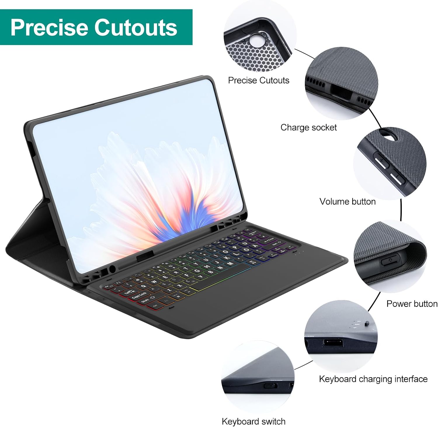 【As a gift for your family/friends】 This gorgeous and functional Galaxy Tab S9 Plus keyboard case can be given as a present for Christmas,a birthday, Father's Day, Mother's Day, Thanksgiving, etc. Note: The second button on the right in the top row is to switch the light color, and the third button on the right is to adjust the brightness of the light