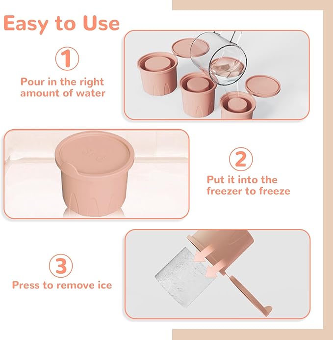 MULTIPURPOSE ICE CUP MOULDS: Our silicone ice cube trays make 3 large hollow cylindrical ice cubes, perfect for 24-40 oz insulated glasses. They can spice up whiskey cocktails, smoothies, juices or other drinks. What's more, this mould not only makes ice cubes, but also delicious treats in your favourite flavours such as jelly, baby food, coffee, vegetable puree, yoghurt and chocolate.
