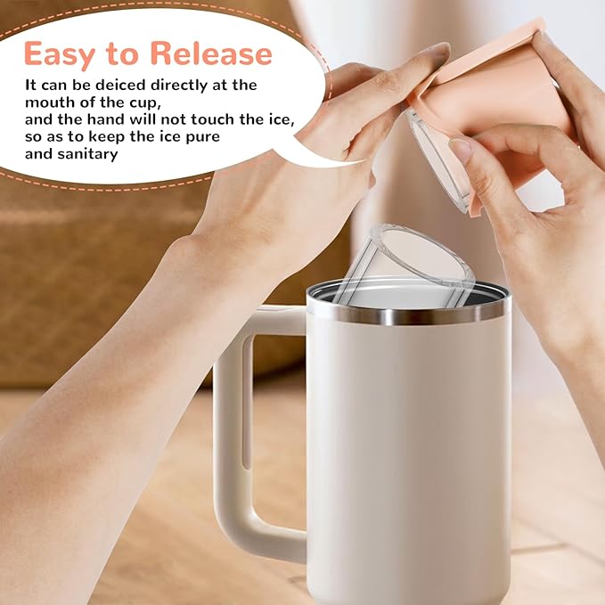 SAFE AND HEALTHY MATERIAL: Stanley Cup Ice Cube Moulds are made of high quality silicone, food grade safe, odourless, BPA free and reusable. It is safe to use from infants to adults. It is also soft and flexible, allowing you to easily remove ice cubes without cracking or breaking.
