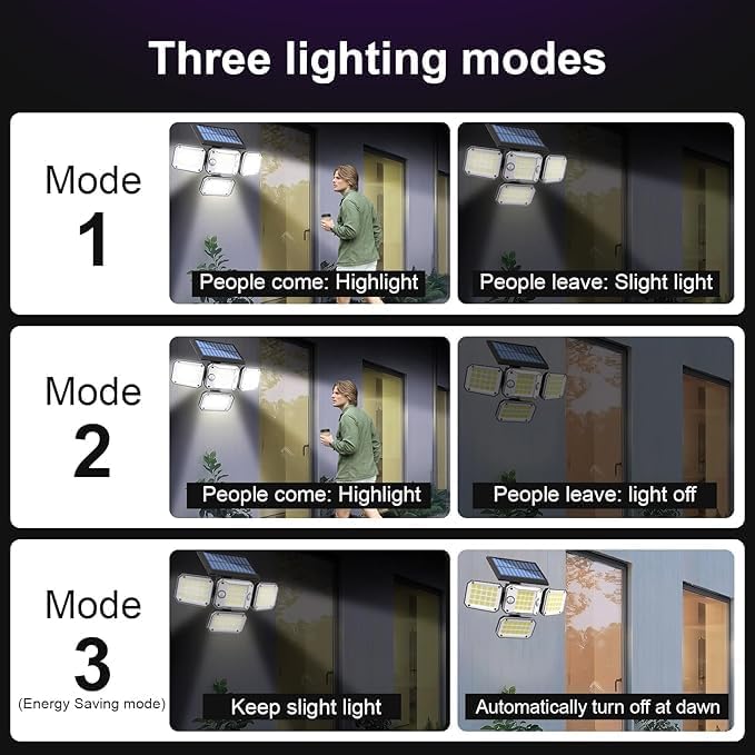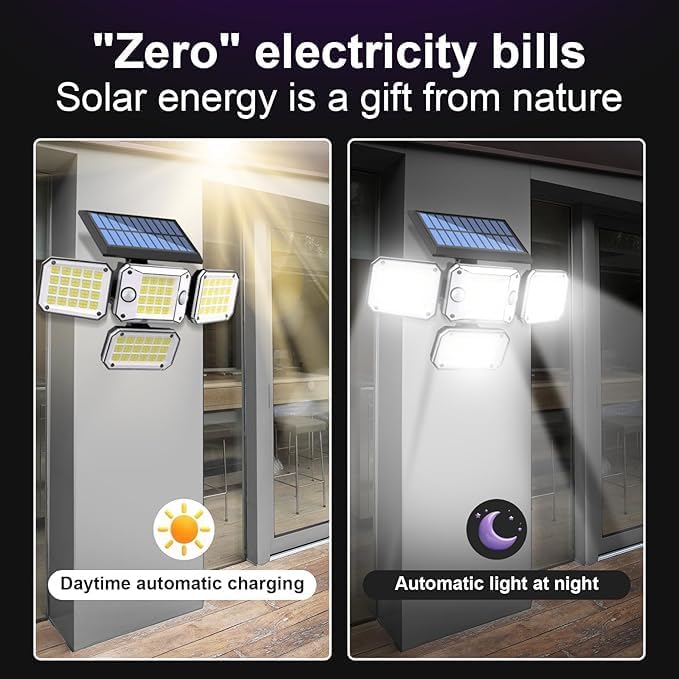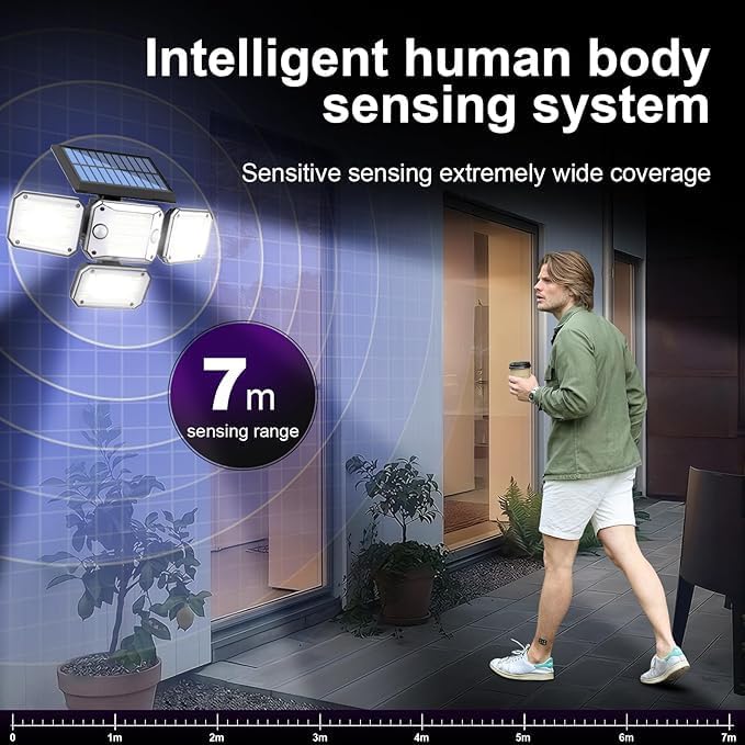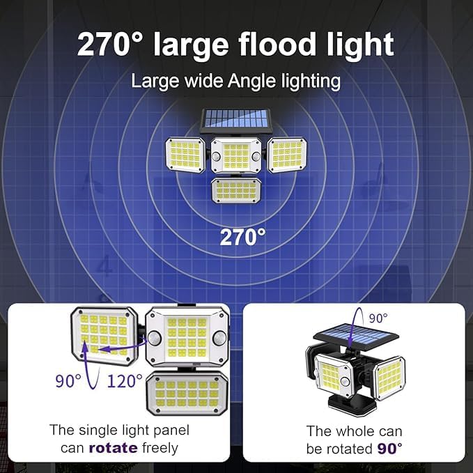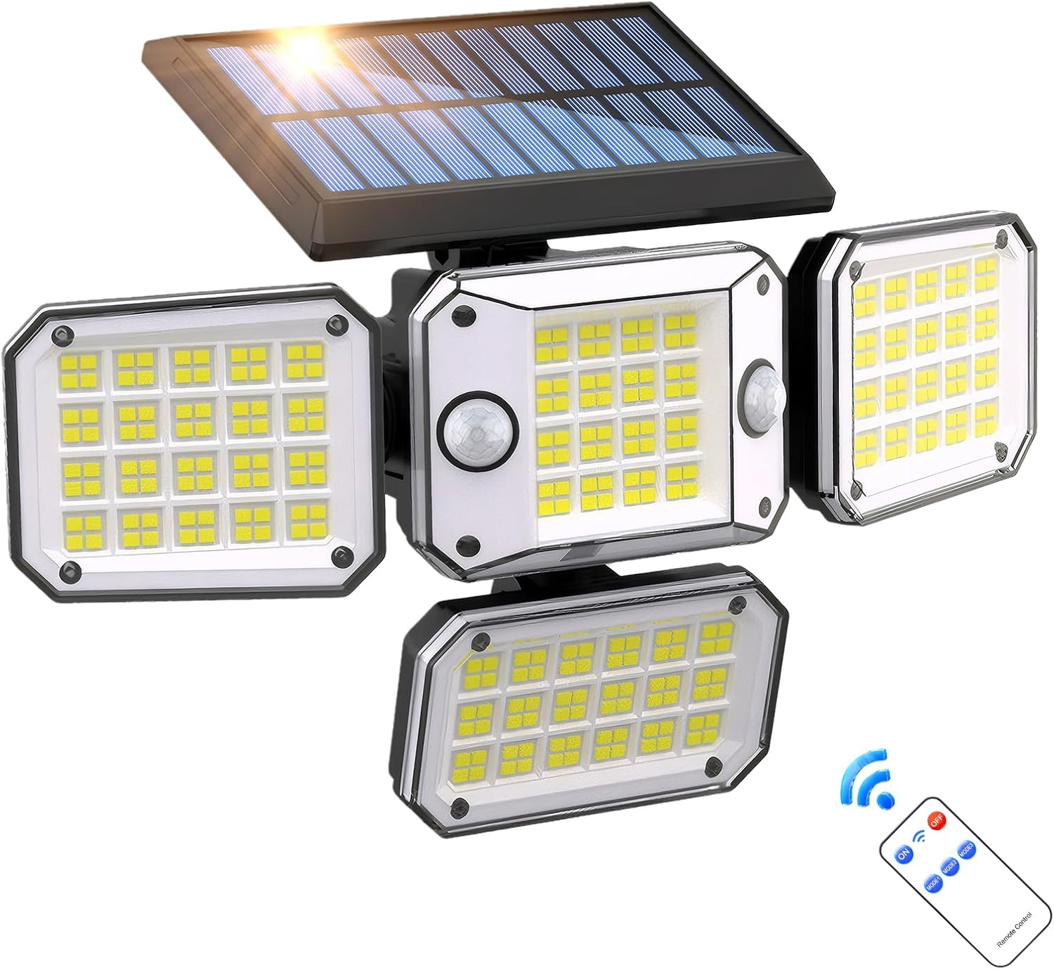 Outdoor Solar Motion Sensor Lights with Dual Sensor Solar Flood Light Waterproof Security Lighting with Remote Control 4 Lighting Heads 270° Wide Angle
