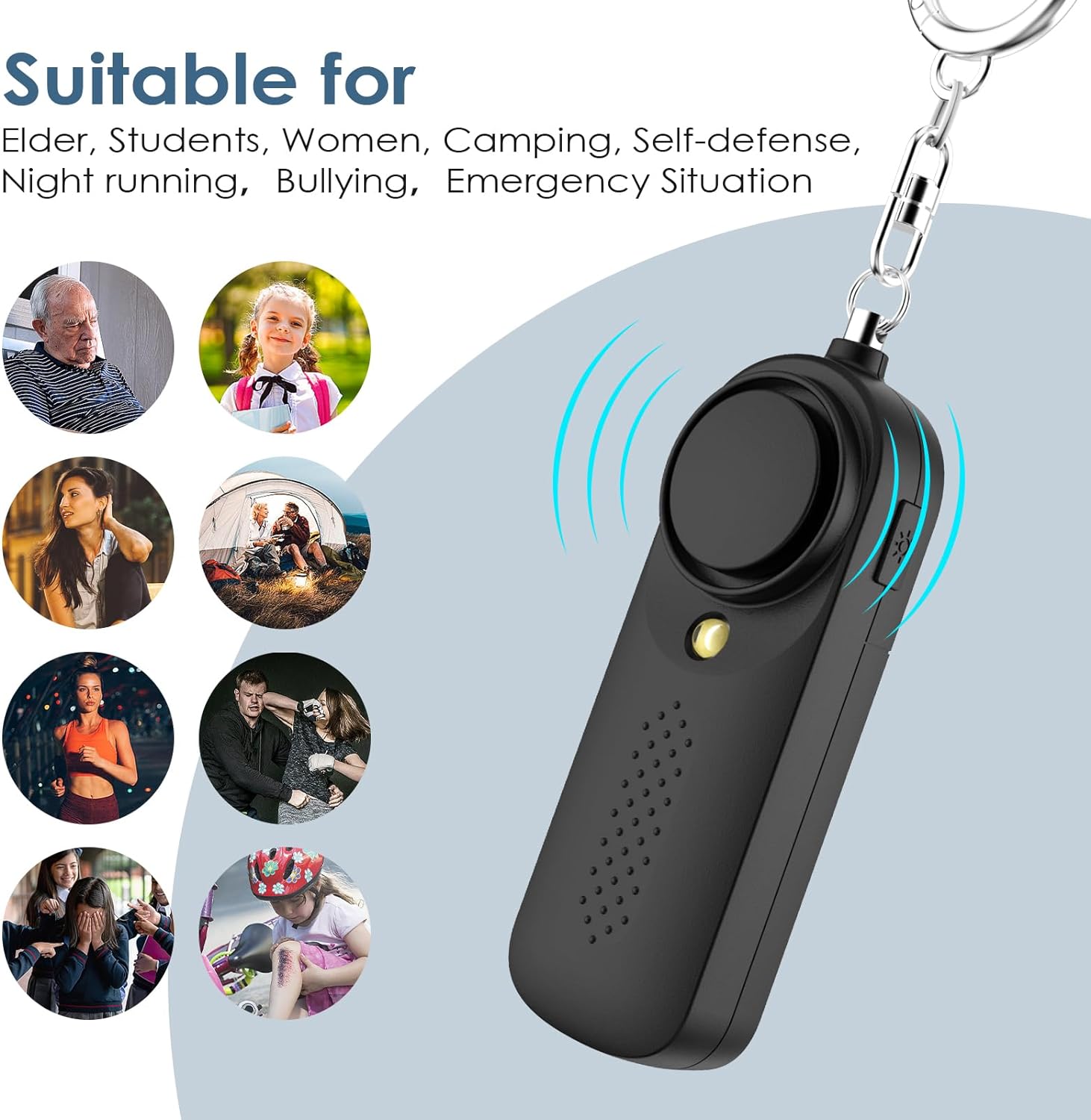130dB Loud Sound: 130dB loud personal alarm with keychain, can emit a loud sound to attract attention, even from far away. The 130 decibels can effectively scare attackers in danger and seek people for help; It will be your good helper when you have trouble or need help.