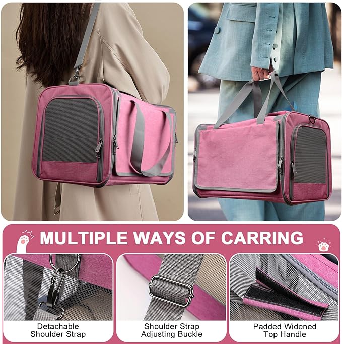[PORTABLE AND FOLDABLE]: The dog carrier bag comes with a soft shoulder strap and carrying handle, and is available in shoulder, diagonal and hand-carry styles, allowing you to save effort when travelling with your pet on trips, walks and daily trips.