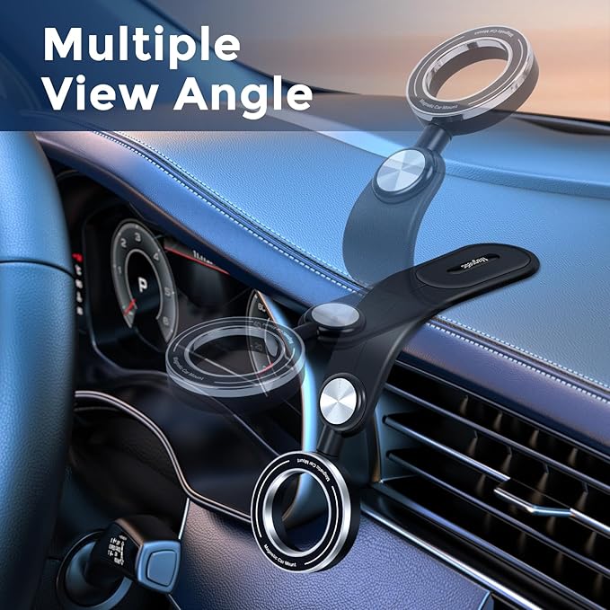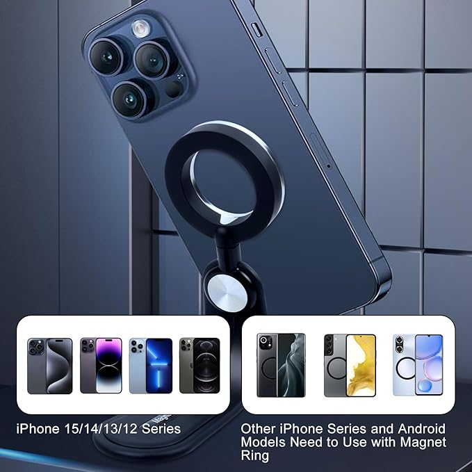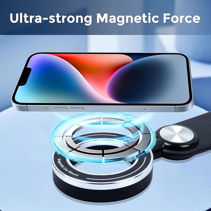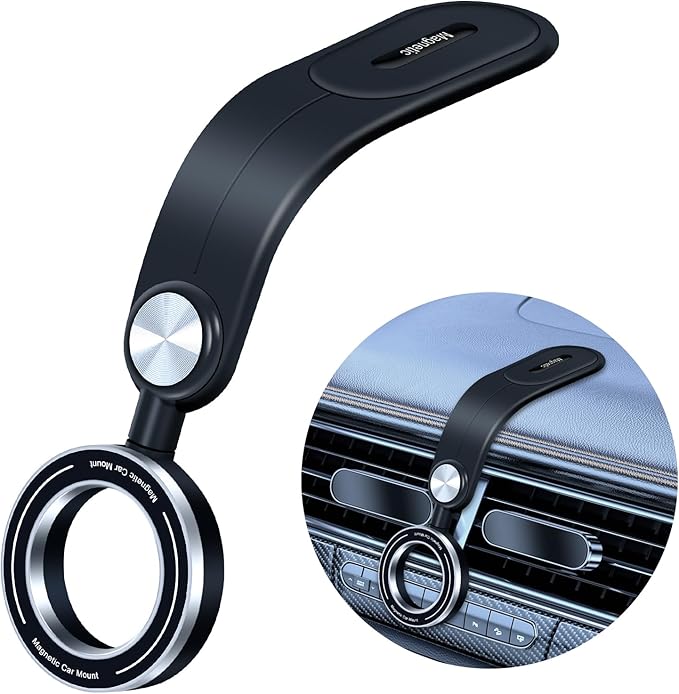 Wide Compatibility: This car holder is designed specifically for MagSafe iPhone 15, 14, 13, and 12 series models, as well as all MagSafe cases, ensuring a secure magnetic attachment. For other phone models or non-MagSafe cases, a metal ring sticker is required to achieve strong magnetic attraction. It is recommended to directly attach the metal ring to the back of the phone or outside of the phone case.