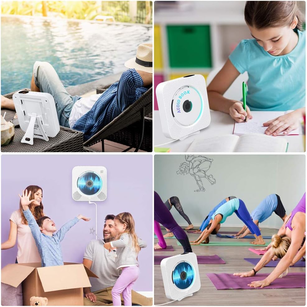 【Wall Mountable CD Player】Wall mounted and creative pull switch design, makes it easier to be mounted on the wall. The CD Player also comes with a compact stand, you can place the CD player in the living room, dining room, bedroom, gym or wherever you prefer.