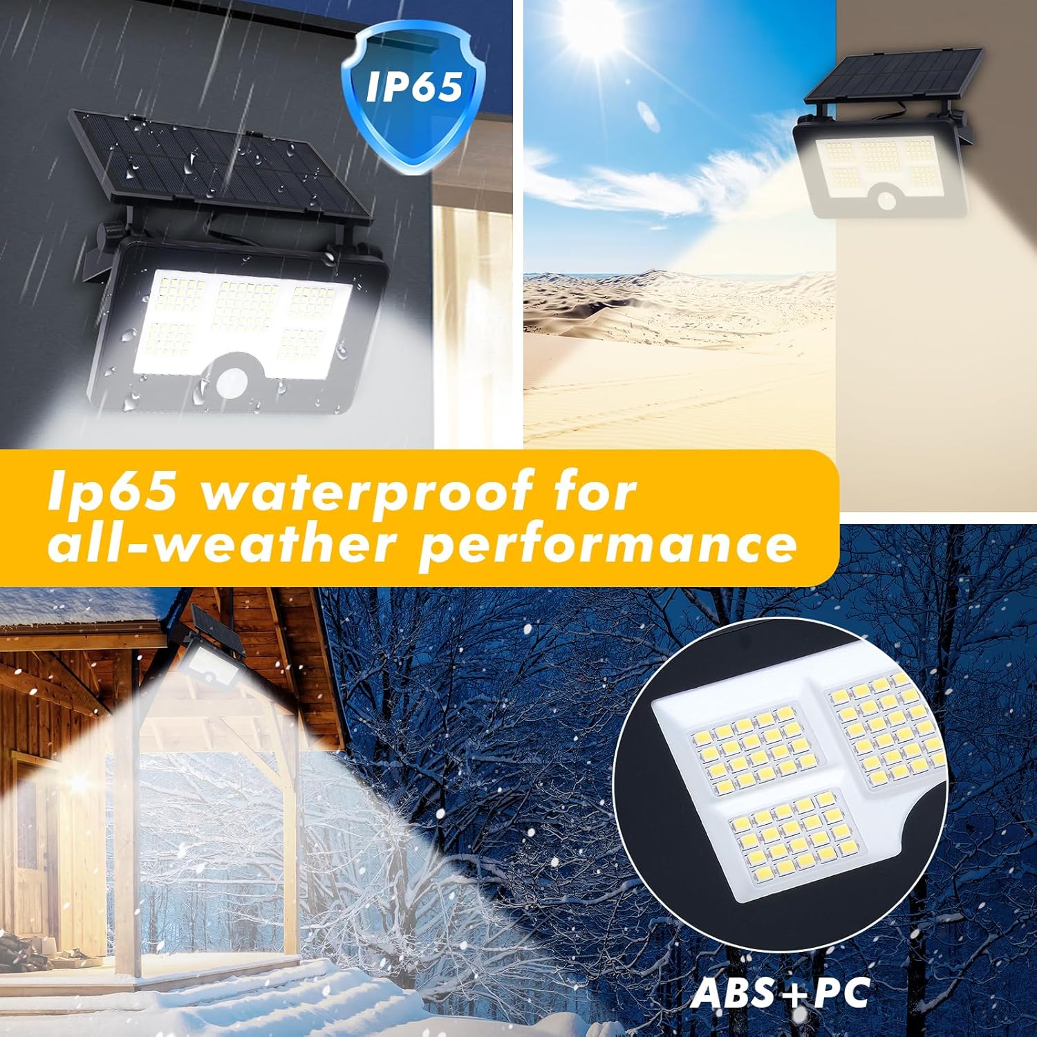 - 【Multi-Scene with Solar Motion Lights Outdoor】Ideal for courtyard, patio, garage & garden lighting, this solar motion light outdoor features advanced sensor triggering low-brightness on motion for energy saving, high-brightness on motion for security, and constant-on + SOS mode for emergencies. IP65 waterproof and impact-resistant ABS+PC shell endures rain/snow/UV, while flexible wall/column installation with adjustable bracket fits backyard lights outdoor needs.
