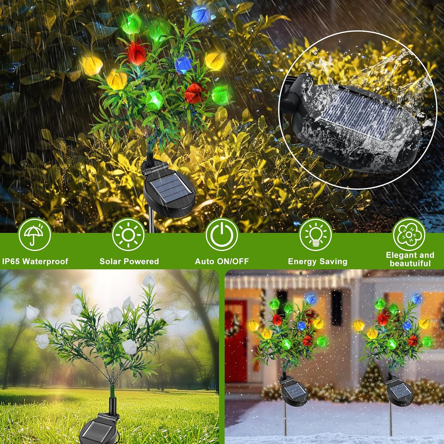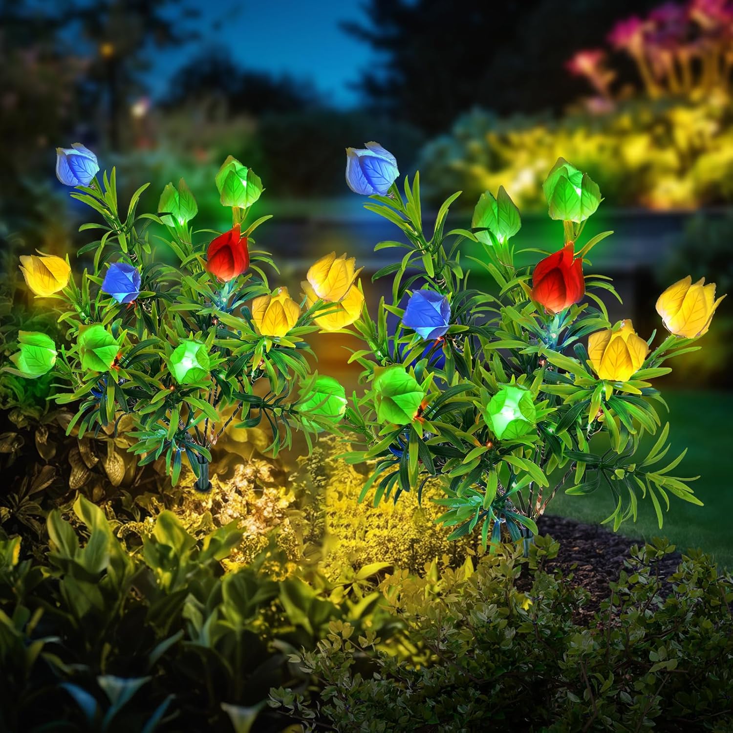 Qoosea 2 Pack 8 Flower Solar Light Outdoor Waterproof Colorful Light 2 Lightning Mode