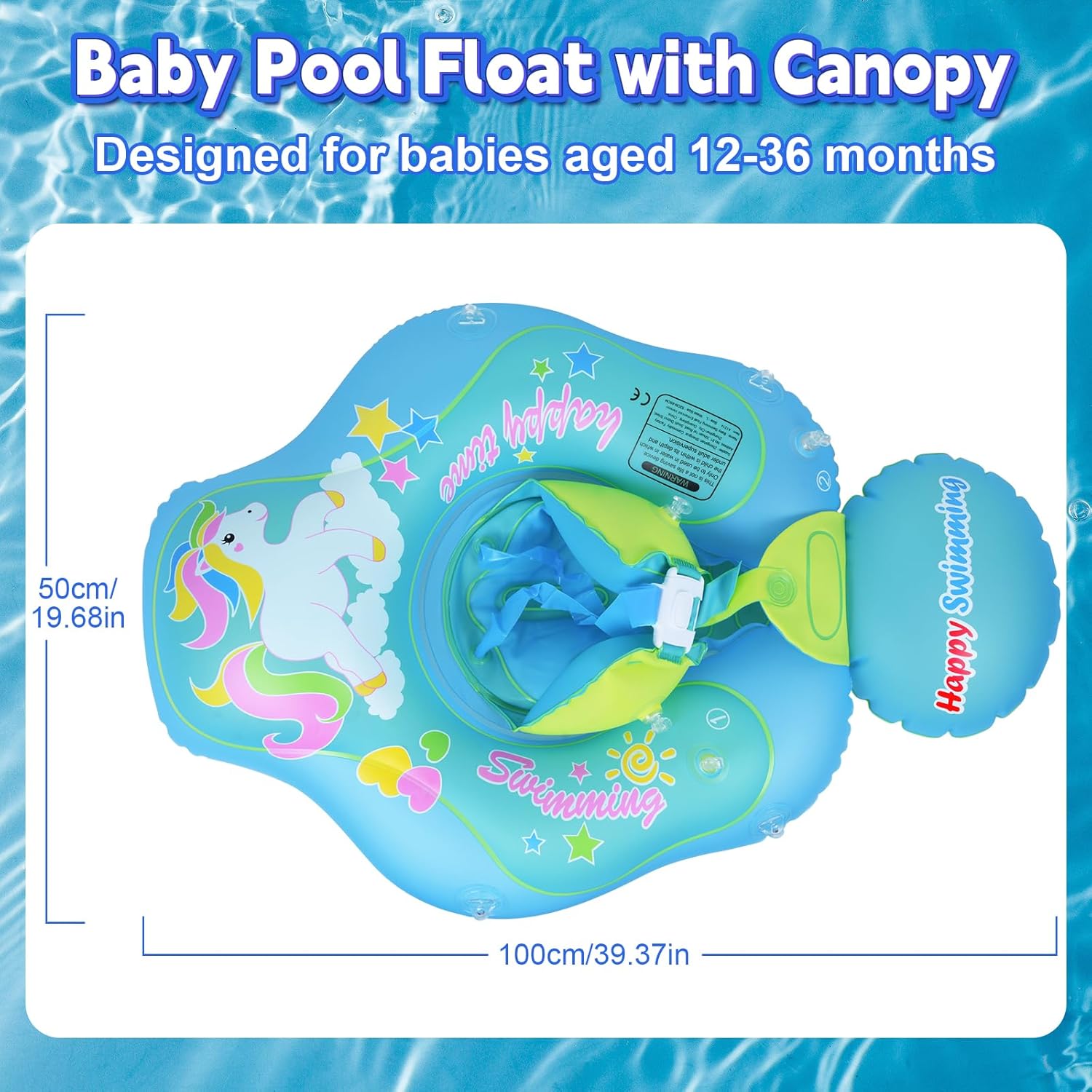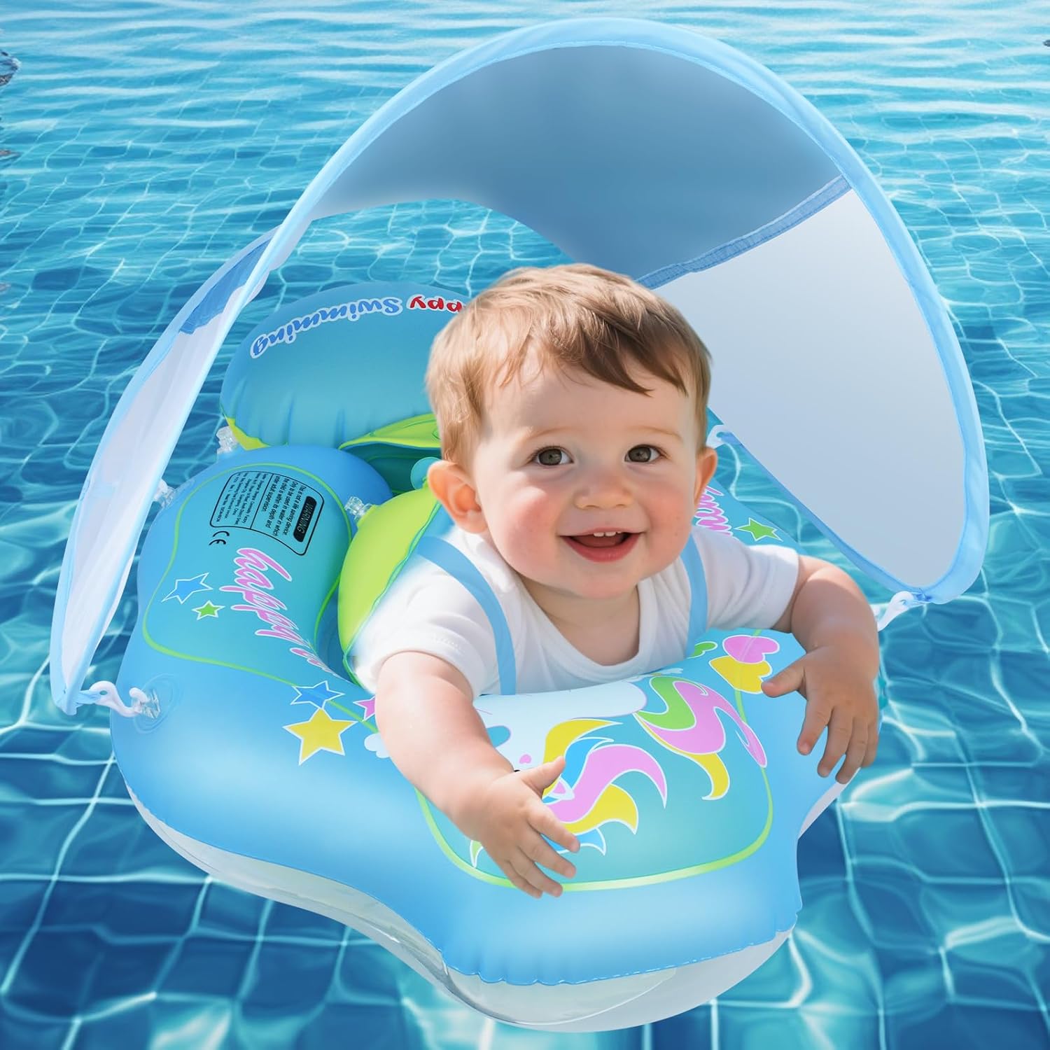- 【Comfort Design】The baby float with canopy comes with a deep seat design that fits snugly to your baby’s body shape, effectively preventing tipping and water flow impact. This keeps your baby stable and comfortable in the water. The adjustable strap design allows for a flexible fit to different body types, making sure your baby stays comfortable throughout the swim