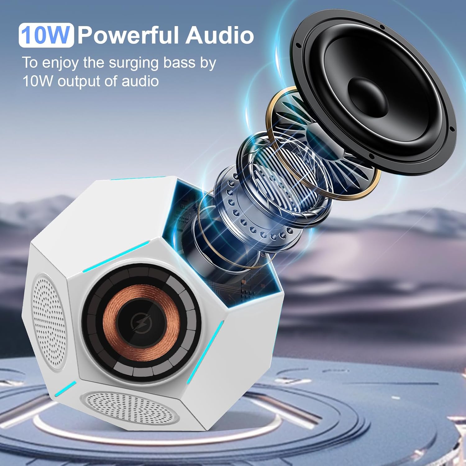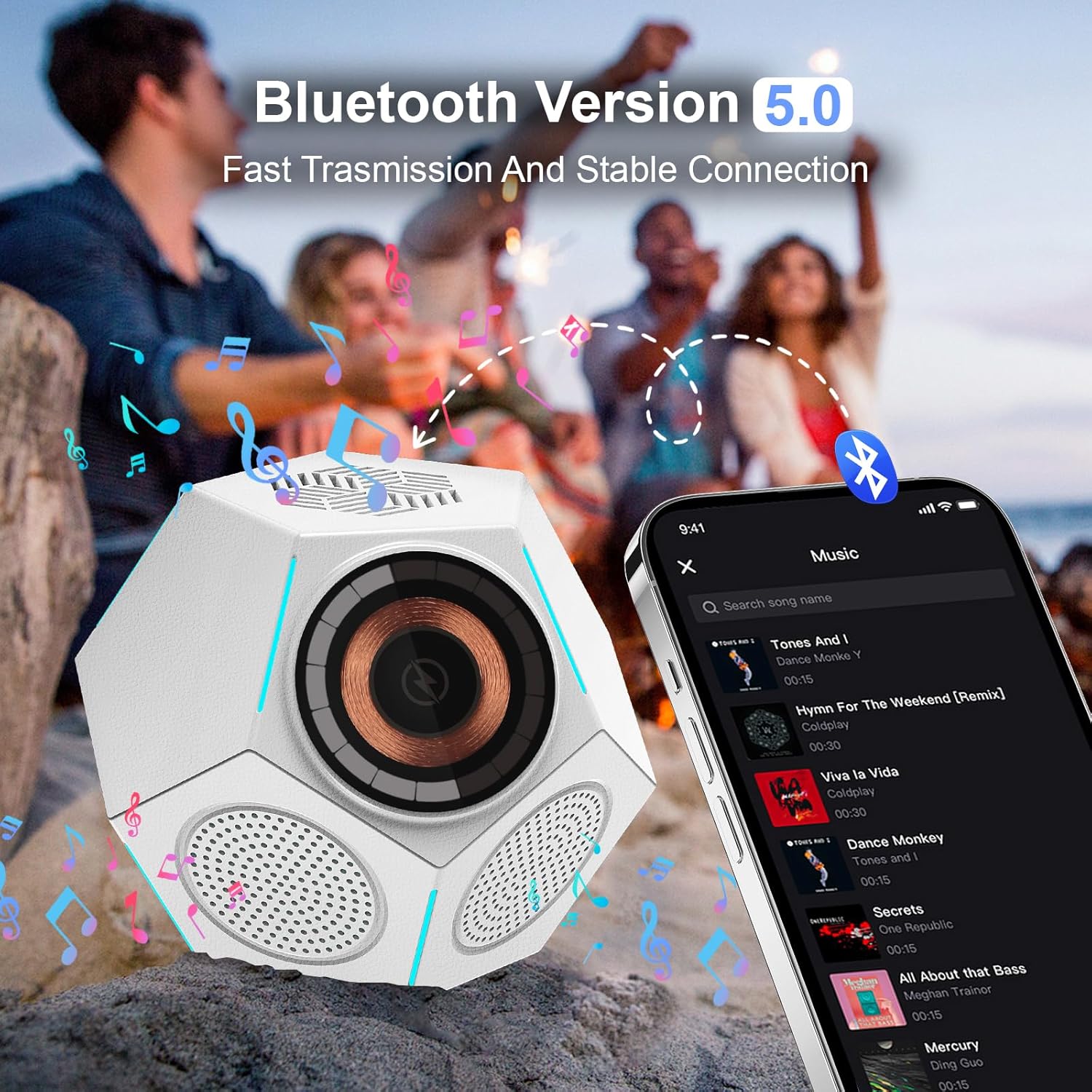 - 【Perfect Gift】: This mini wireless Bluetooth speaker has an unique geometrical appearance, which can help your room become more fashionable. It also has colorful dazzling lighting effect, and it will create a better atmosphere for you. Perfect distraction as gifts for home parties, birthday parties, friend gatherings, outdoor activities, etc.