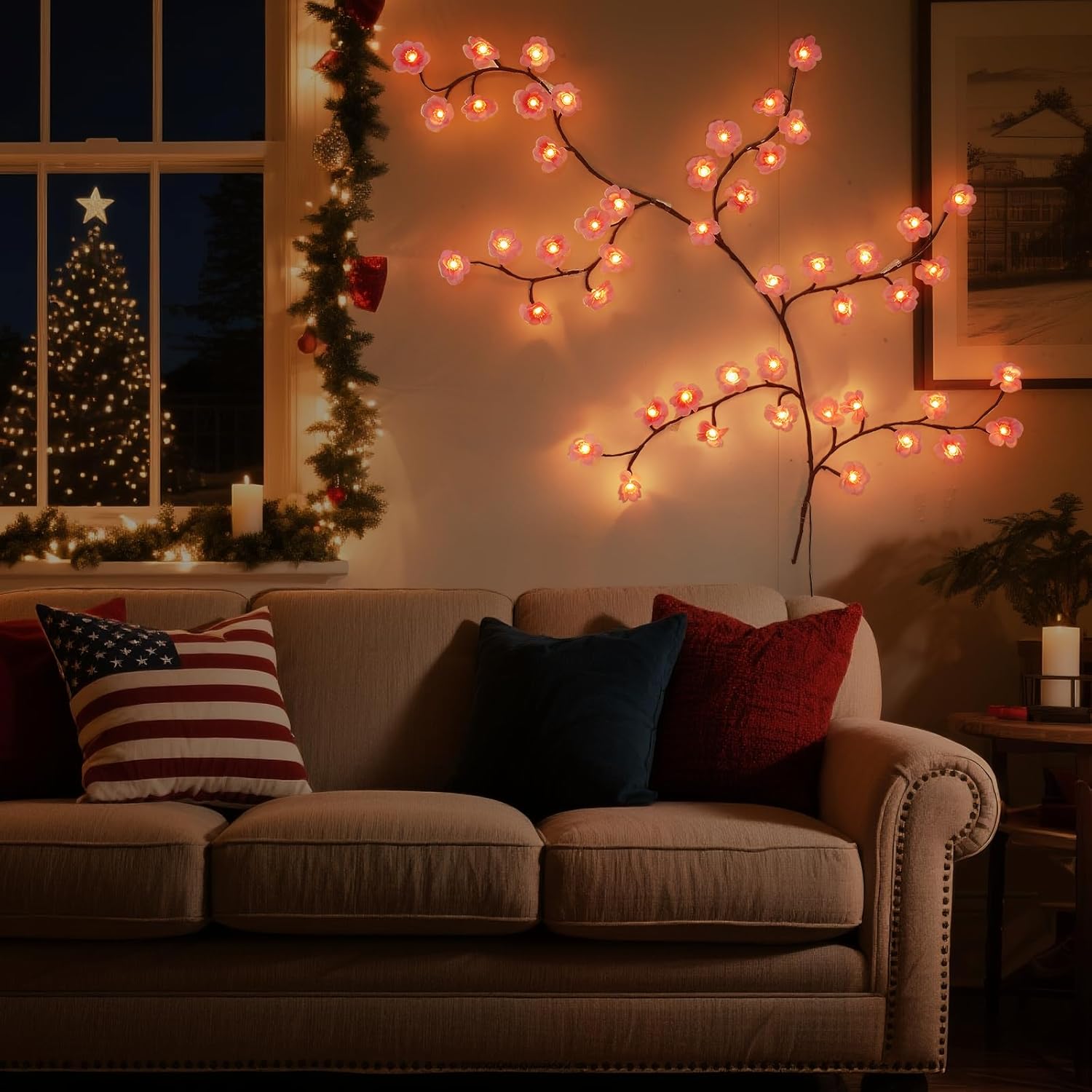 Qoosea Decorative Cherry Branch Wall Lights 48 LEDs 1.2M with Remote Control 8 Lighting Modes