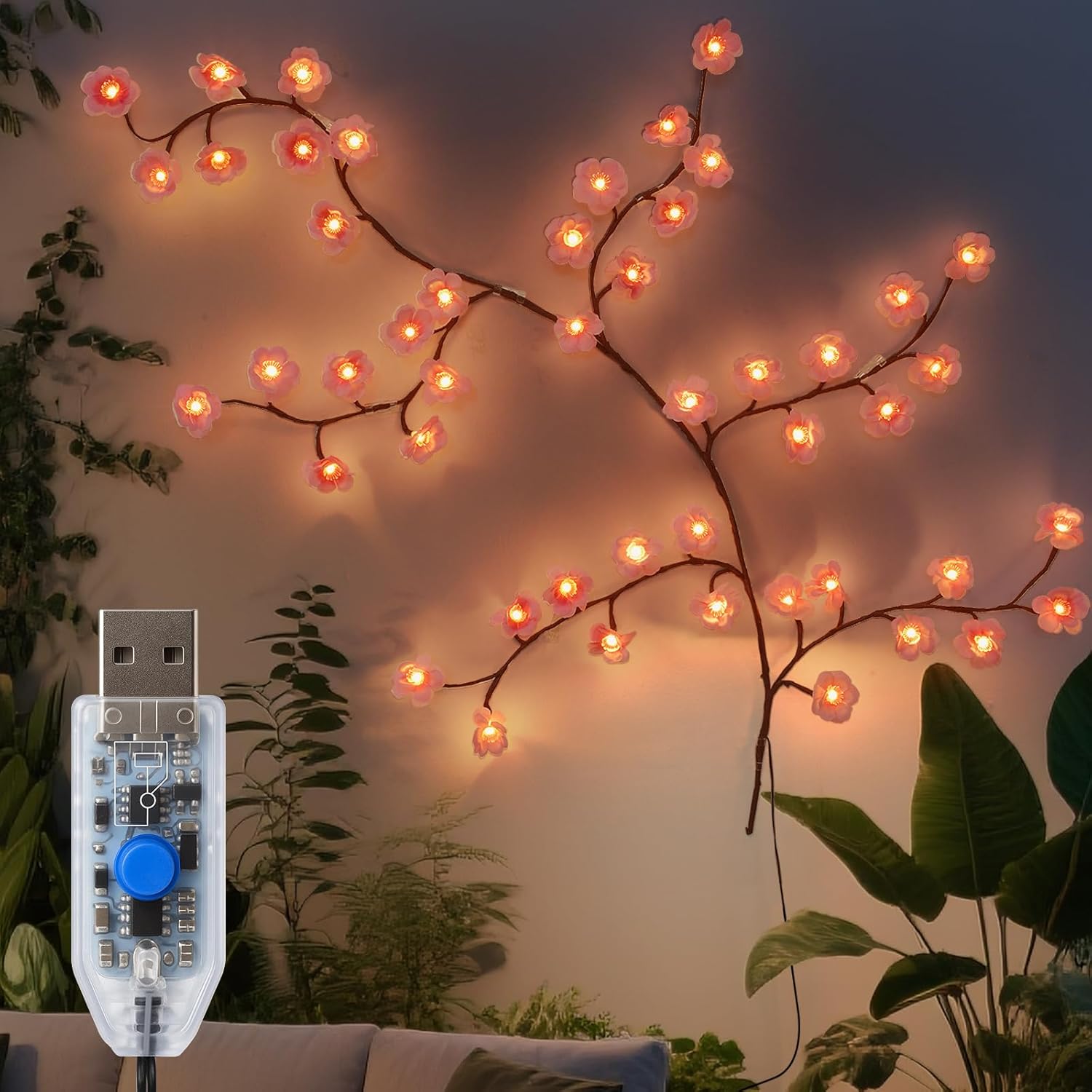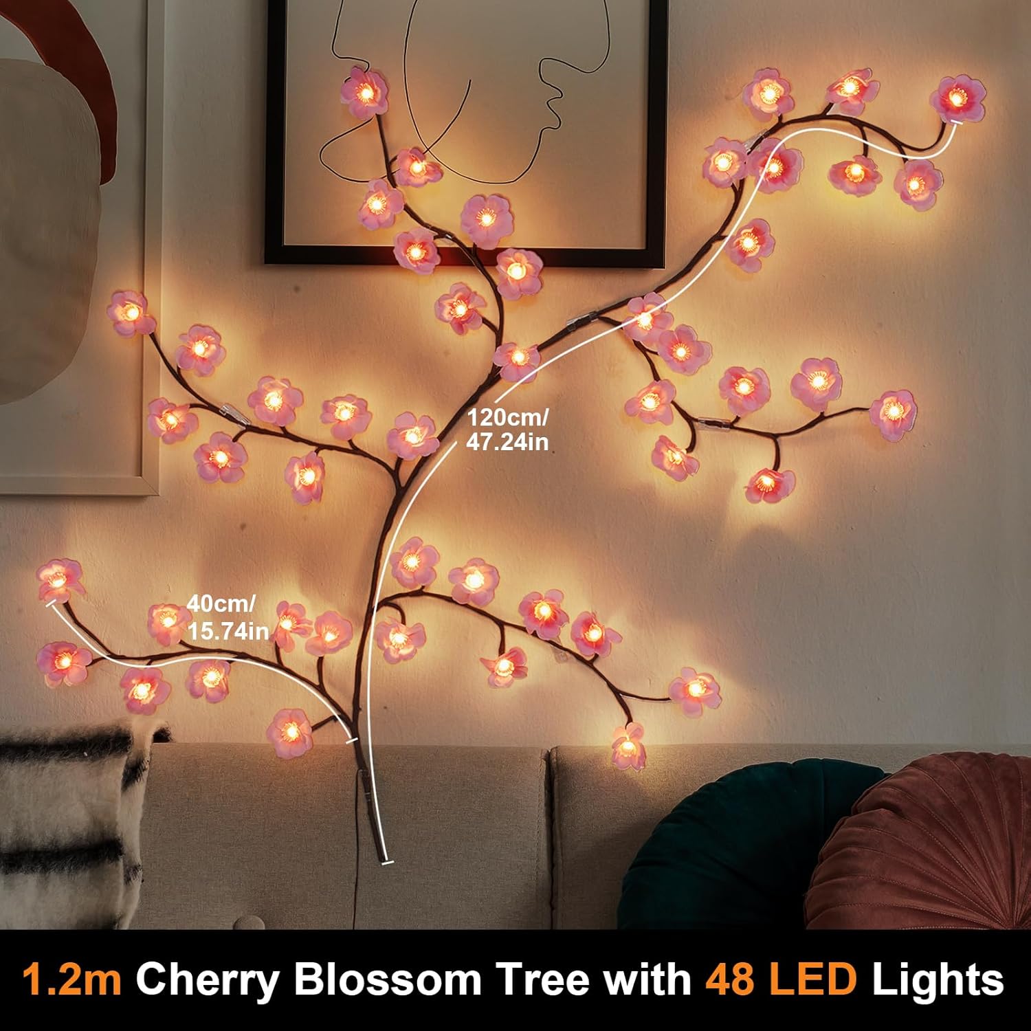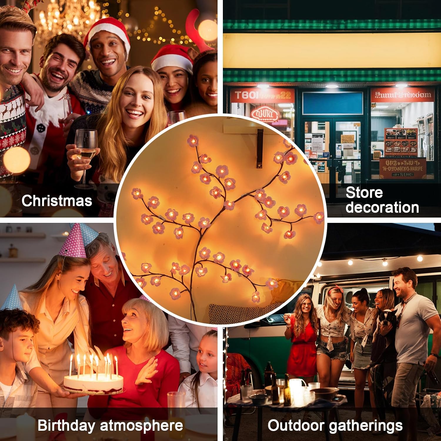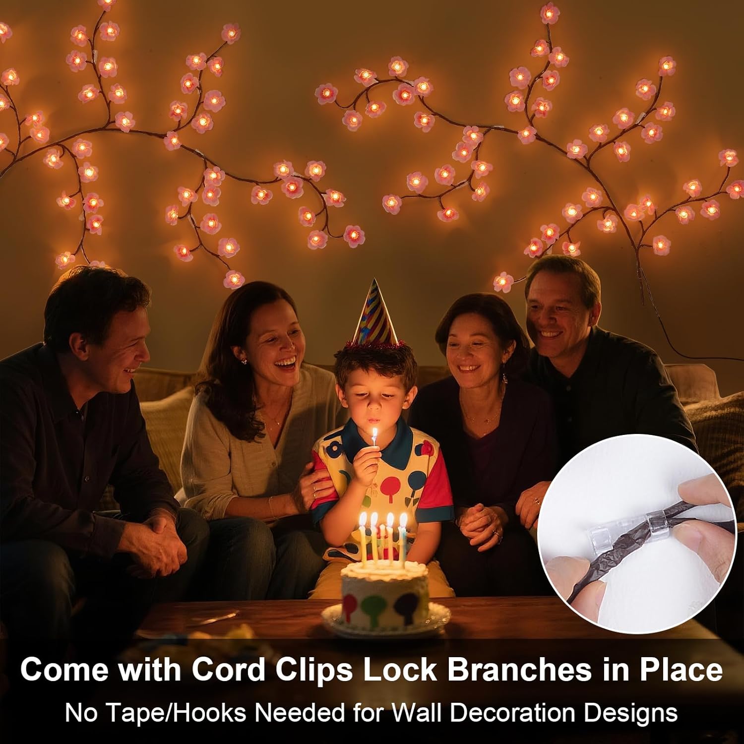 Multi-scenario application: The LED lights feature a low-heat design, ensuring safe use even with prolonged use. Whether for family gatherings, romantic bedroom decor, or creative office decorations, you can effortlessly create a poetic and picturesque cherry blossom lighting landscape.