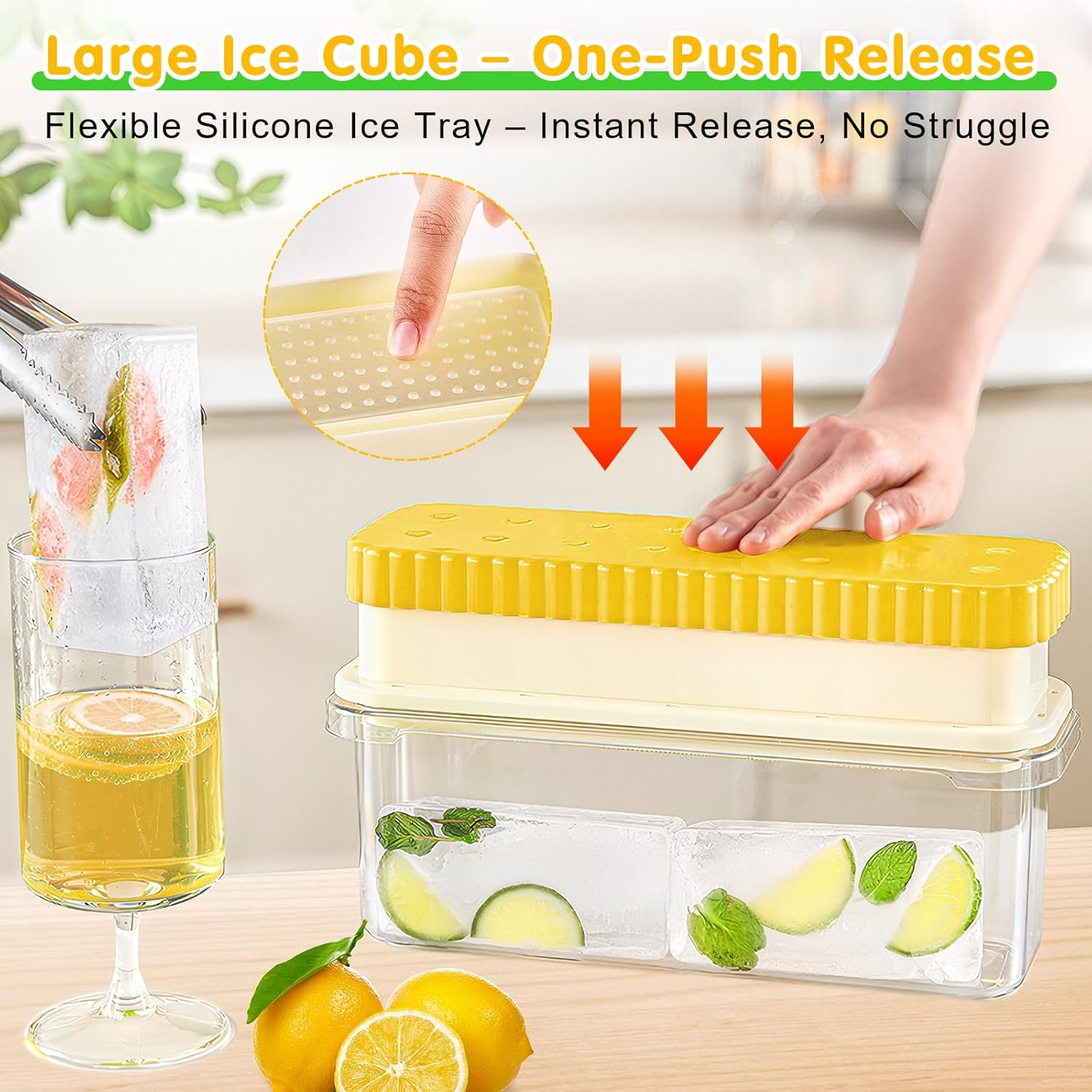 Qoosea Ice Cube Tray with Lid and Bin:Large 2Pcs 1 Tray Ice Cube Trays for Freezer Reusable Ice Trays