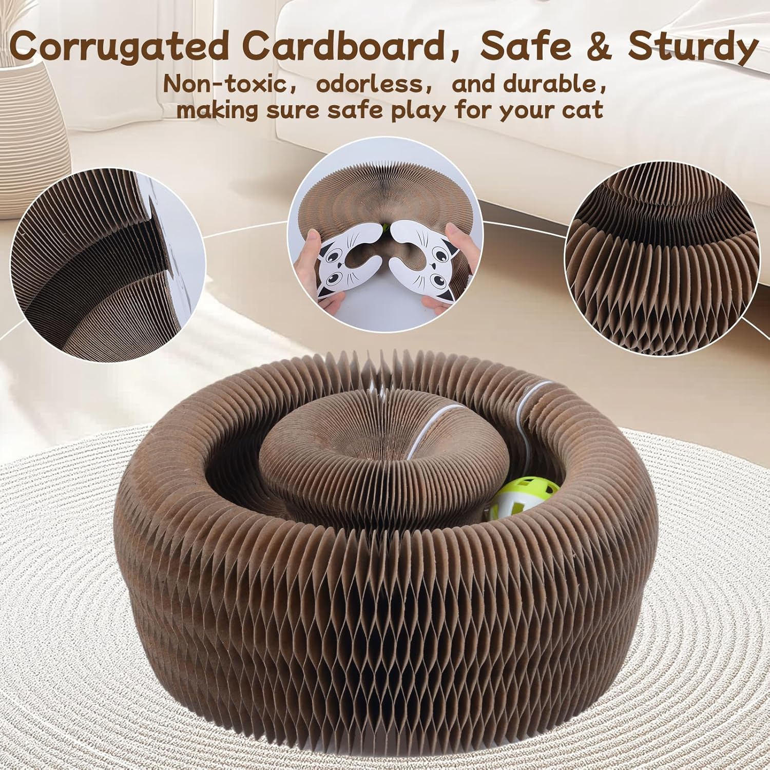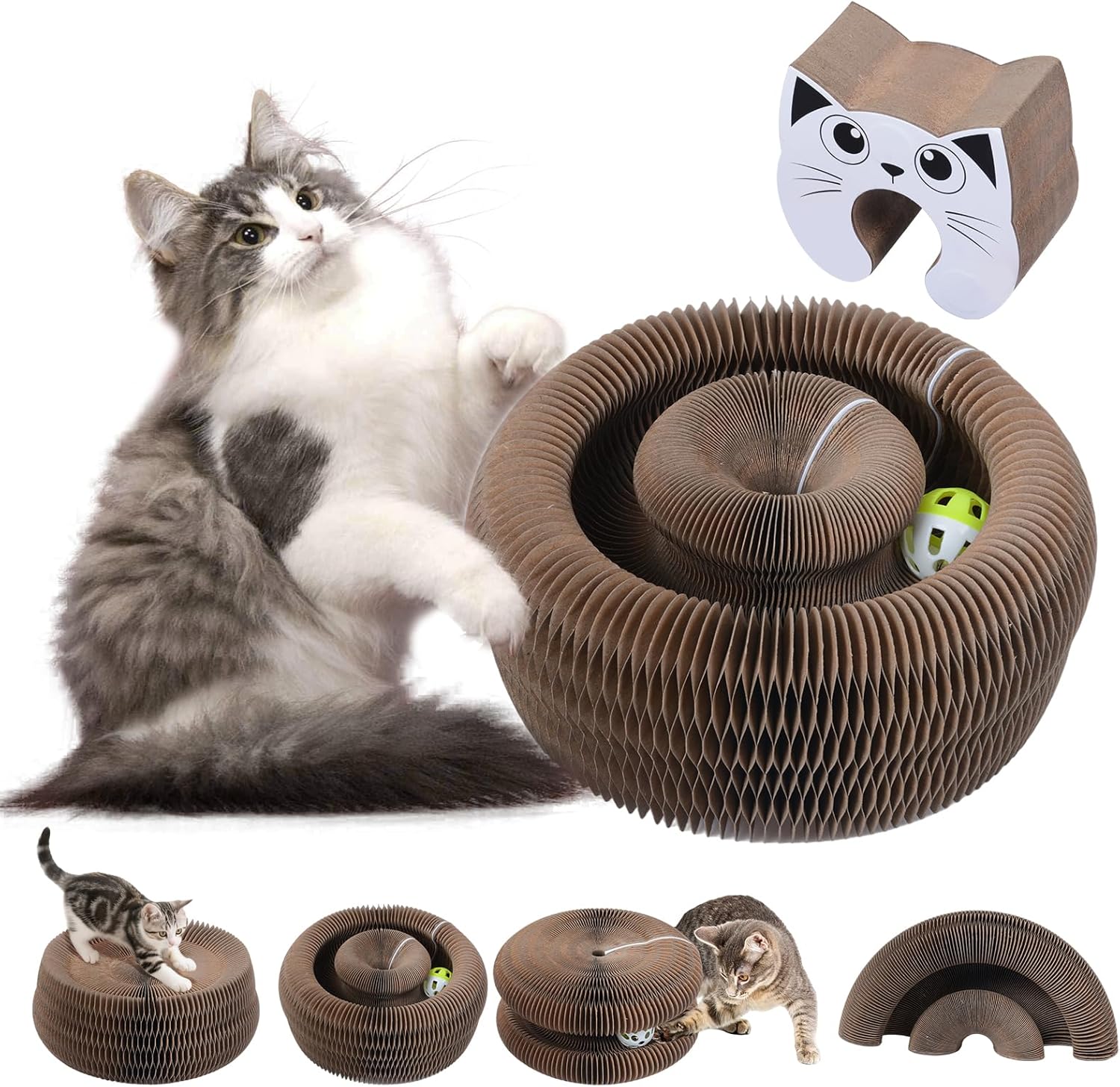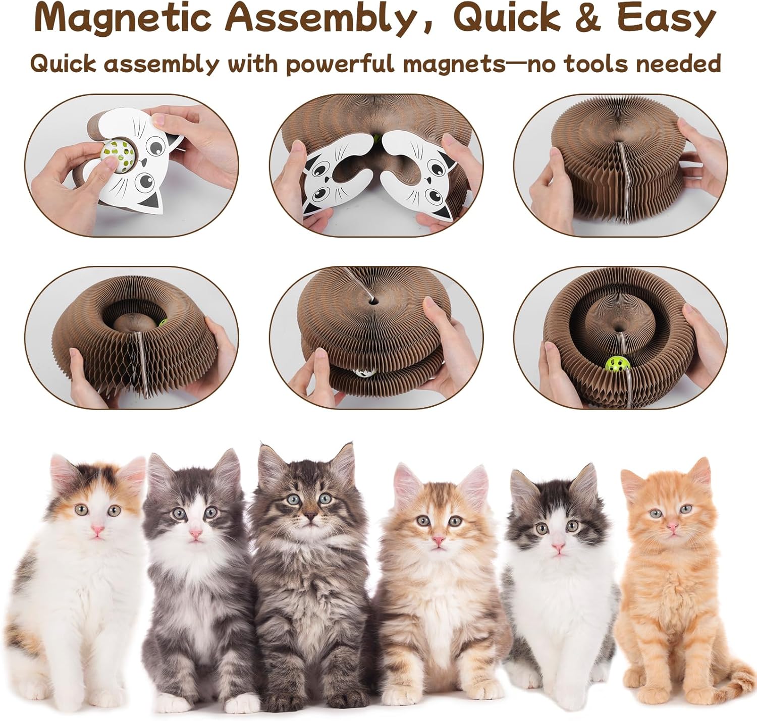 Qoosea Kitty Kurlz Indoor Cat Toy, Cat Paw-Shaped Accordion Cat Scratcher with Bell Ball & Magnetic Design