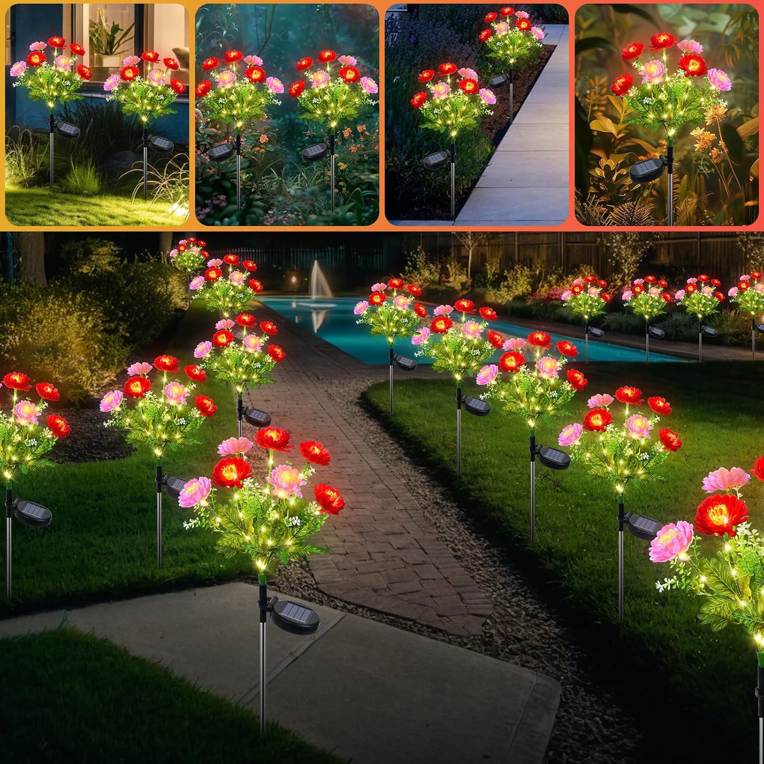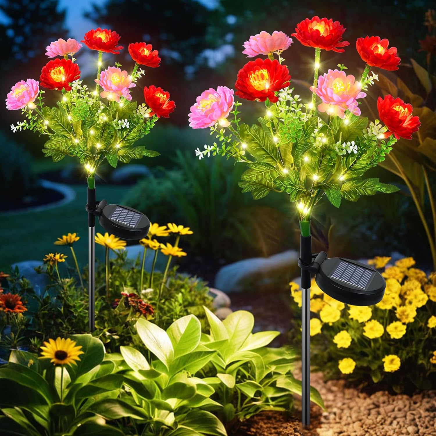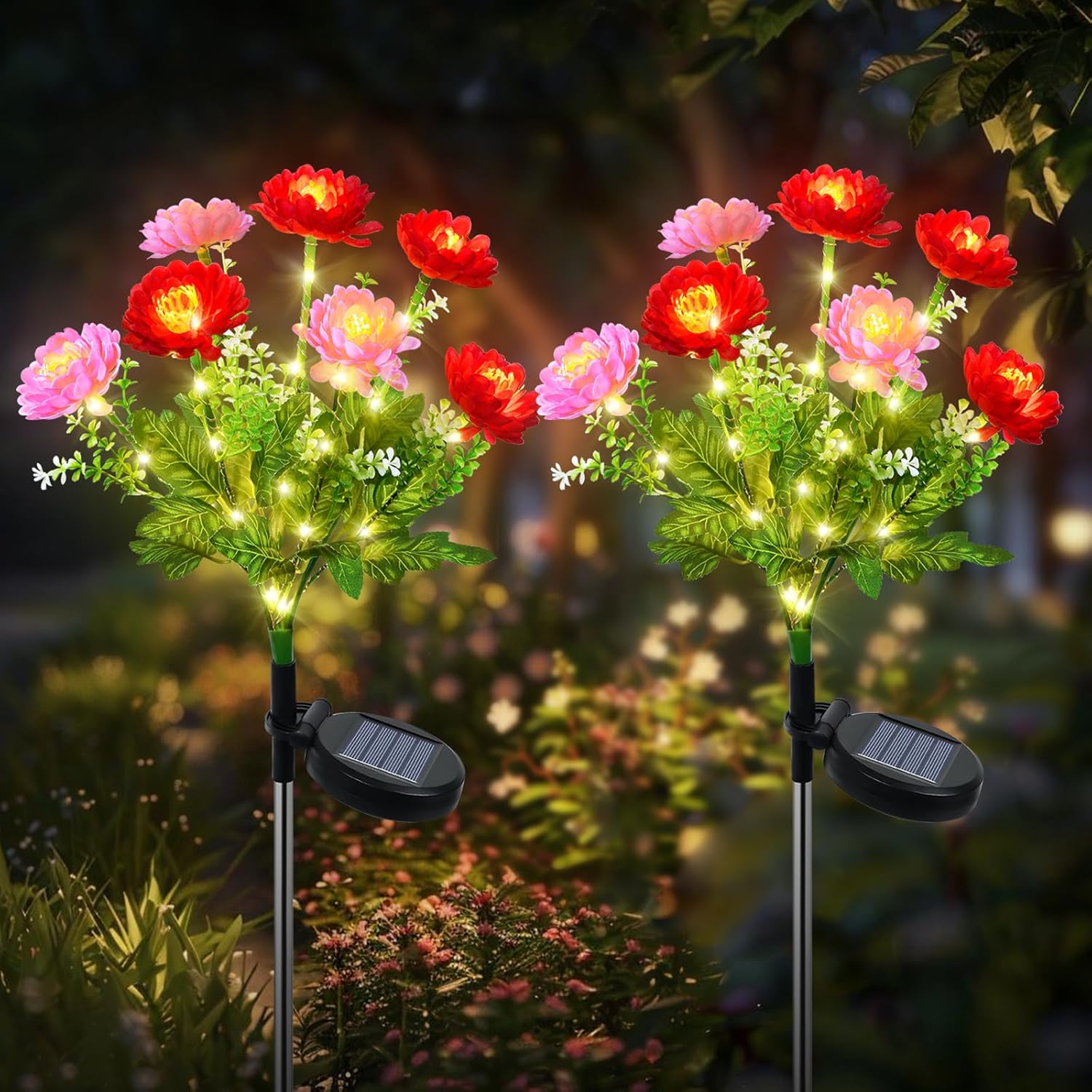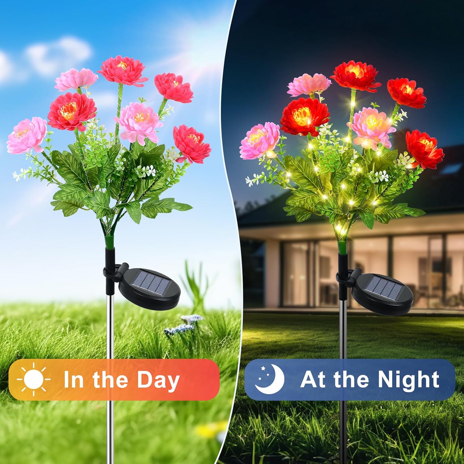 Upgraded Solar Panels & Automatic ON/OFF:Built-in 600mAh battery, Charging time: 5-7 hours. 12 hours lighting time (fully charged); light sensor, auto on and off. Our outdoor Solar Lights Equipped with an auto-sensing switch that can automatically switch on and off according to light and motion sensing. With high brightness LED light source, which can create a warm and soft light effect for the flowers and butterflies, making the whole garden or outdoor space more romantic and warm.