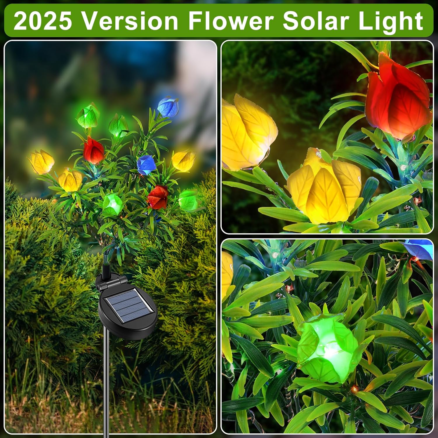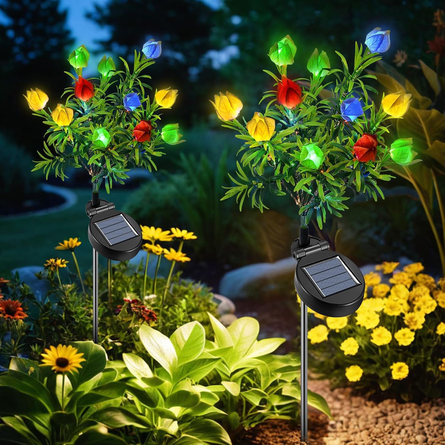 Qoosea Outdoor Solar Lights Waterproof Garden Lights: 2 Pack 8 Flower Solar Light Outdoor
