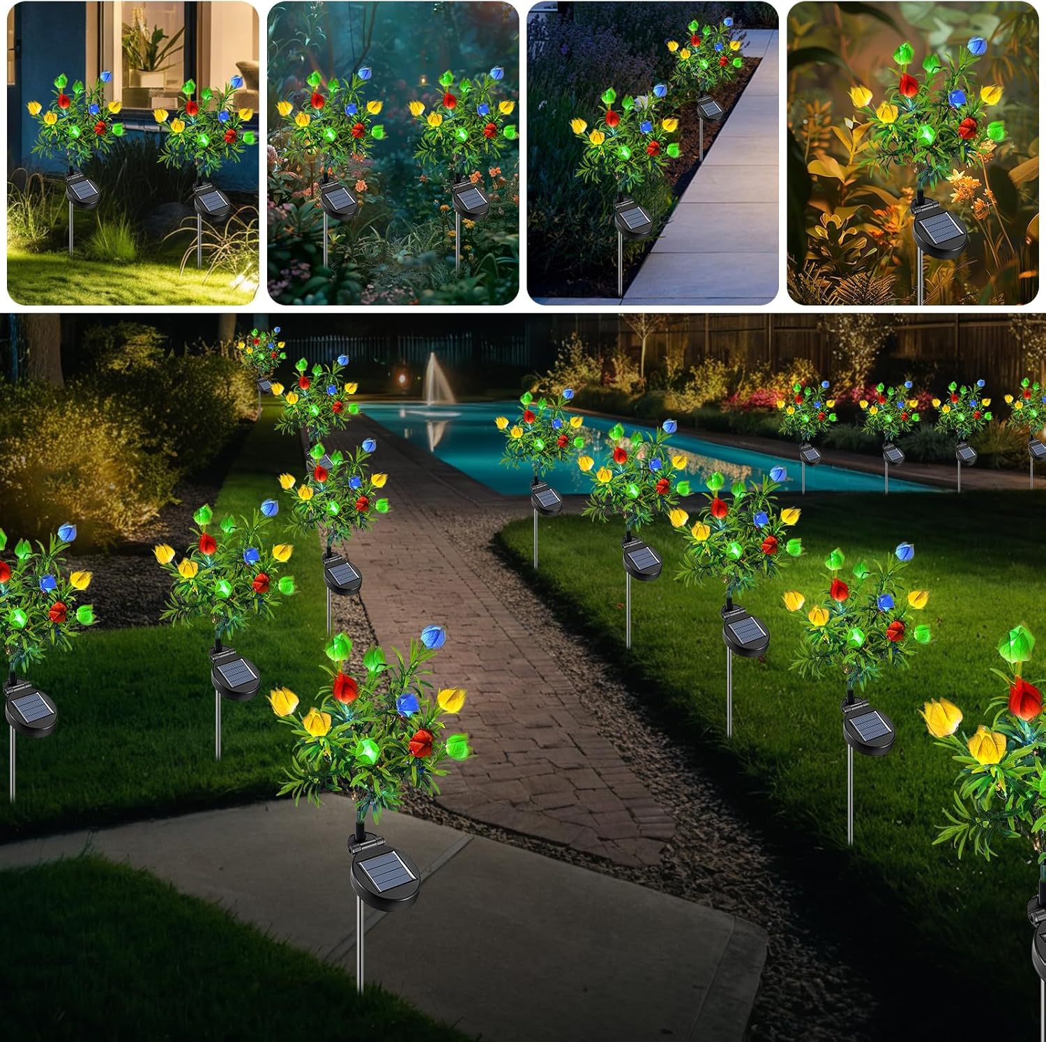 Waterproof Multi-Scene: Outdoor solar garden light IP65, waterproof, suitable for outdoor garden decoration. Spring, summer, fall and winter can be used in all seasons, stainless steel ground stake is hard and corrosion-resistant, can withstand rain and snow.