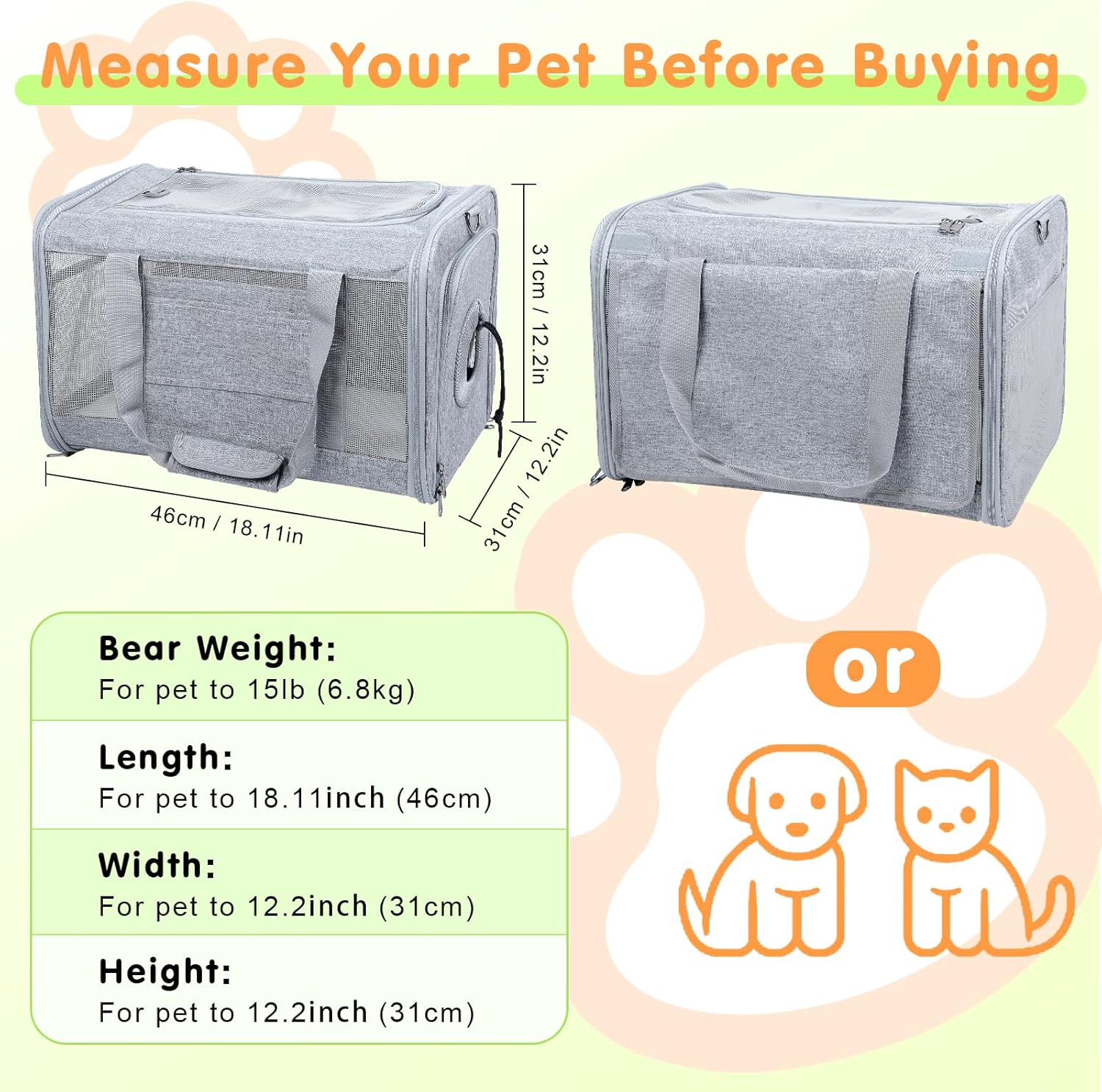 - 【Perfect Size and Weight Capacity】The size of pet carrier is 18.11" x 12.2" x 12.2" (46cm x 31cm x 31cm), bearing 30 pounds, suitable for various small dog breeds and cats, which is very suitable for kittens, cats, rabbits, parrots, squirrels, guinea pigs, puppies and other small animals. Please consider your pet's length, height, and weight comprehensively to select the appropriate pet carrier, making sure safety and comfort during travel