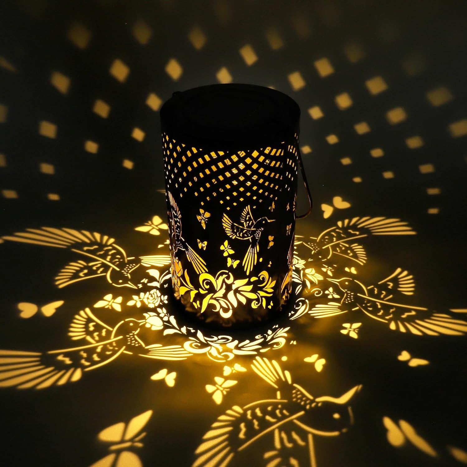 Qoosea Solar Lantern Outdoor Garden Decor Hanging Solar Lantern Lights,Metal Hummingbird Decor Outdoor Lantern,Waterproof Led Garden Lantern for Patio, Yard, Table, Pathway(Hummingbird)
