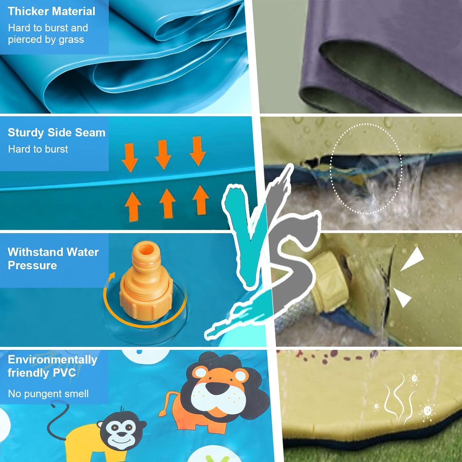 [67" Splash Pad for Kids] - The 67" diameter splash pad for kids ages 4-8 is suitable for outside, which can be used as your mini swimming pool. With Exquisite animal patterns and alphabetic symbols, the kids splash pad also can be used as a learning mat, which gives your baby both learning and play in one incredible pool! Hurry up and enjoy the endless cool and fun that this water splash pad brings in this hot summer!