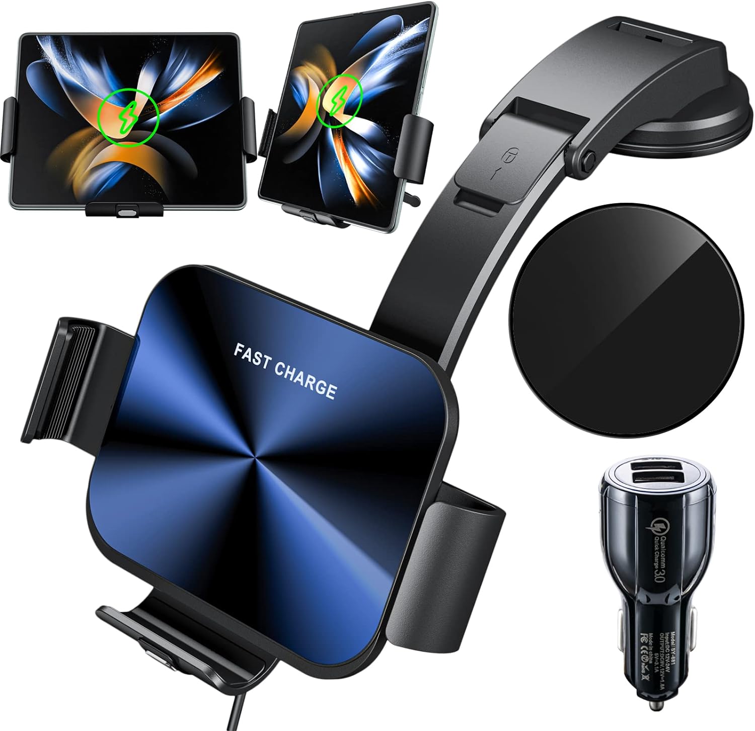 Qoosea Wireless Car Charger Holder Dual Coil 15W Strong Suction for 4.3-6.9 inch