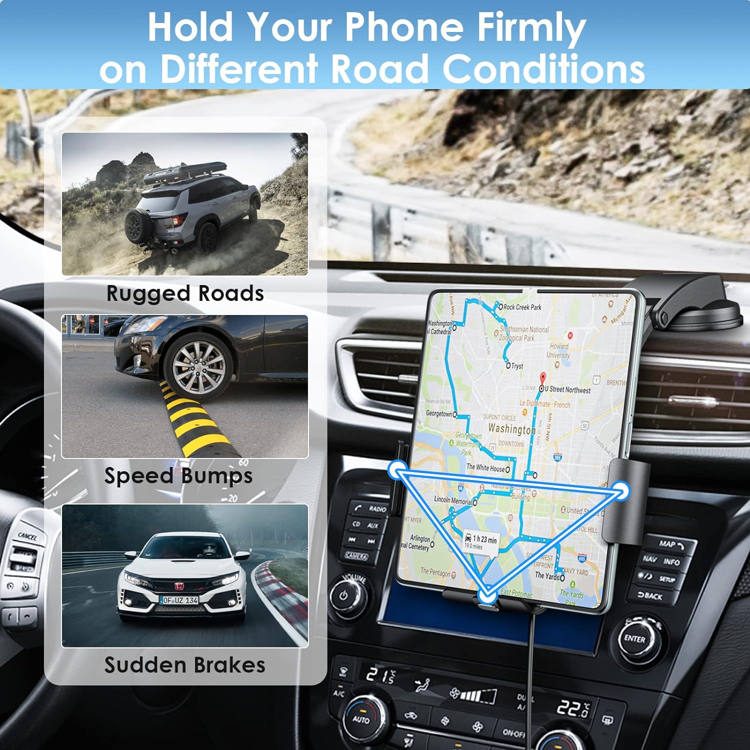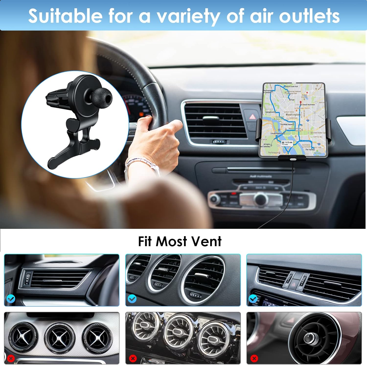 Stability and Safety: Padded with soft anti-slip and shock-absorbing silicone, the clips on this phone holder protect car vents or phones from scratches. Even on bumpy roads, your phone will stay where it is, charging stably. You can operate it with one hand, the 360°rotatable ball can adapt to all your driving postures for added safety.