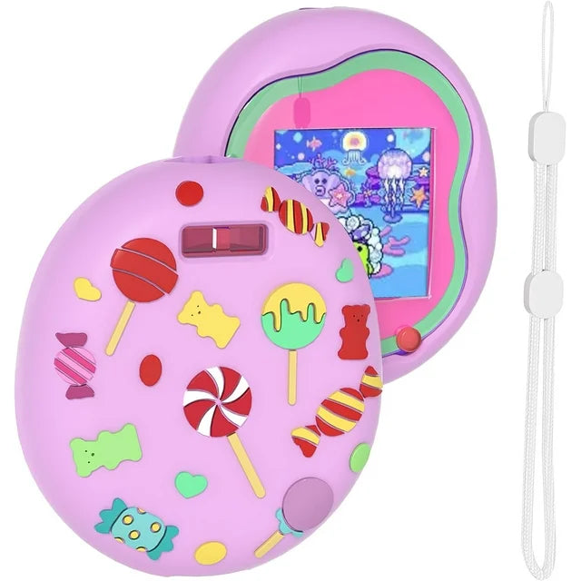 Silicone Cover Case for Tamagotchi Uni Interactive Virtual Pet Game Machine, Protective Skin Sleeve Shell for Tamagotchi Uni with Lanyard (Purple Cover)